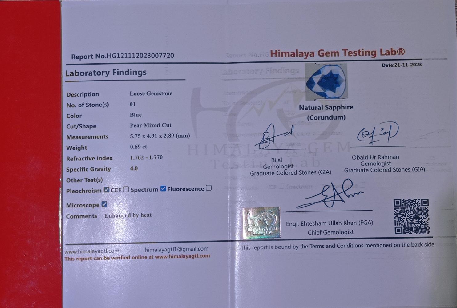 0.69 قيراط من الياقوت السيلاني المعتمد للبيع - الياقوت الأزرق الطبيعي - حجر بخت شهر سبتمبر