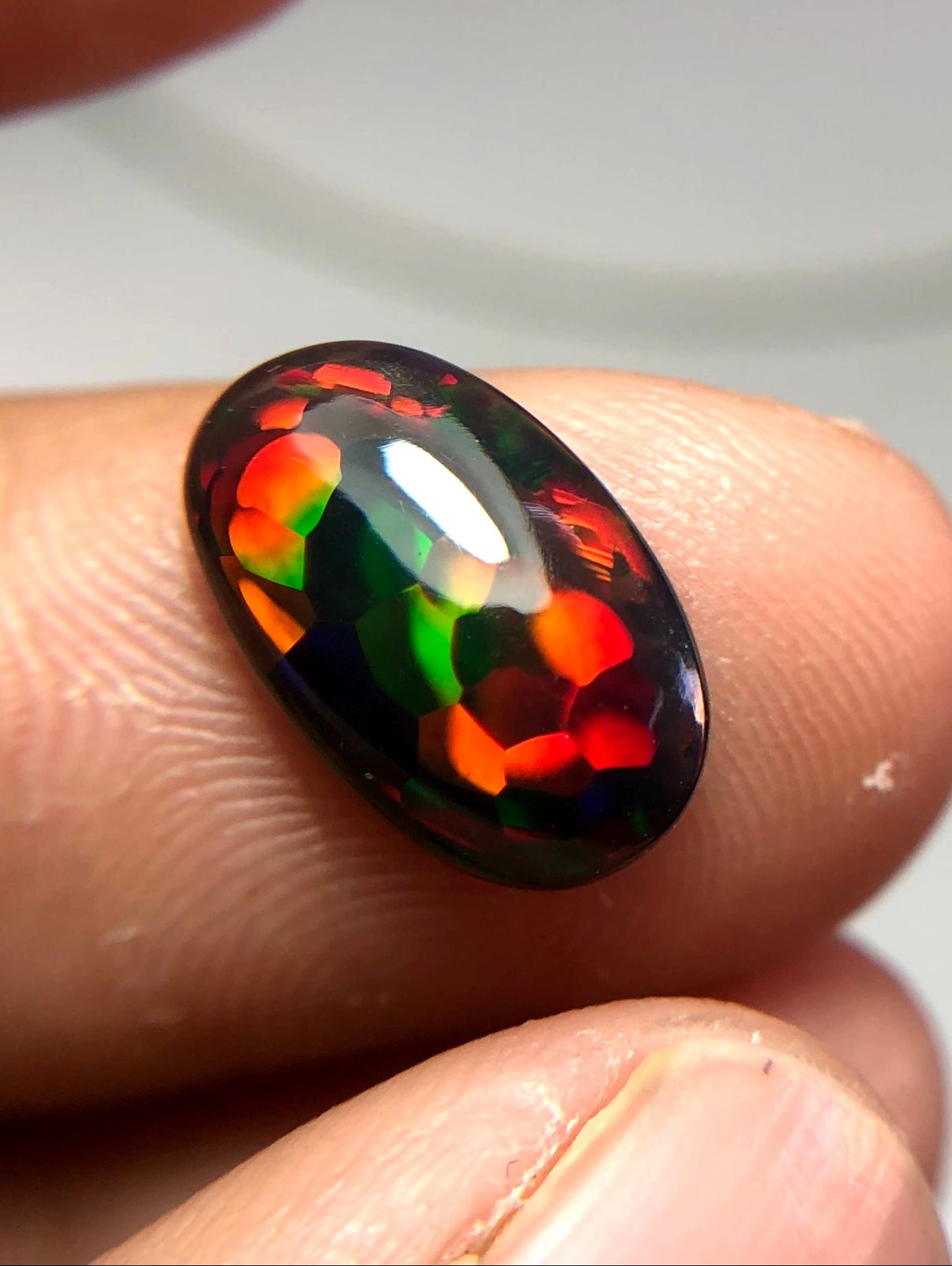حجر أوبال طبيعي ١٫٩٥ قيراط للبيع - أوبال ناري أسود - حجر مواليد شهر أكتوبر - ١٤×٨٫٨ مم