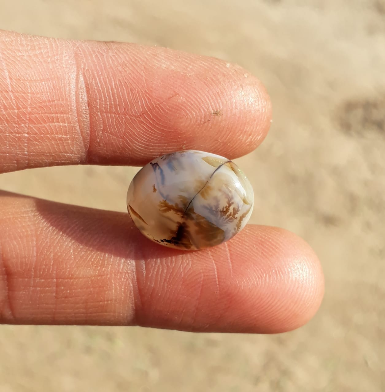 هذا العقيق الطبيعي الشجيري مثالي للمجوهرات؛ حجمه 19 × 15 ملم مثالي لوضعه في الخواتم والمعلقات. استمتع بالأنماط الفريدة لهذا الحجر الحقيقي، الذي يتميز بتكوينات شجرية طبيعية.