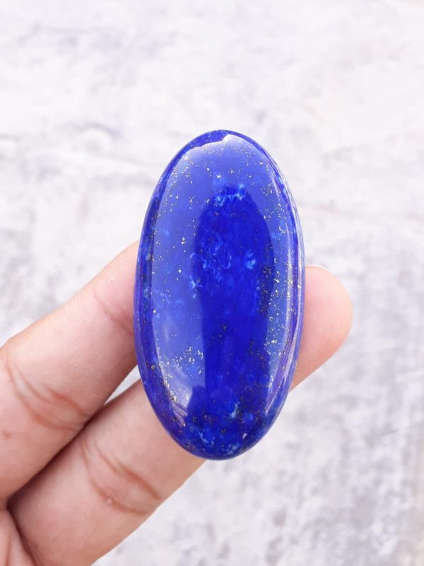 تم تصنيع كابوشون اللازورد الجميل هذا يدويًا من حجر اللازورد الذي يعود تاريخه إلى قرون مضت، وهو ذو قيمة عالية بسبب ألوانه الزرقاء الغنية، والتي يُعتقد أنها تحتوي على خصائص علاجية قوية. هذا الحجر من المناجم القديمة في أفغانستان. دع هذا الحجر يجلب قوته وجماله إلى حياتك اليومية.