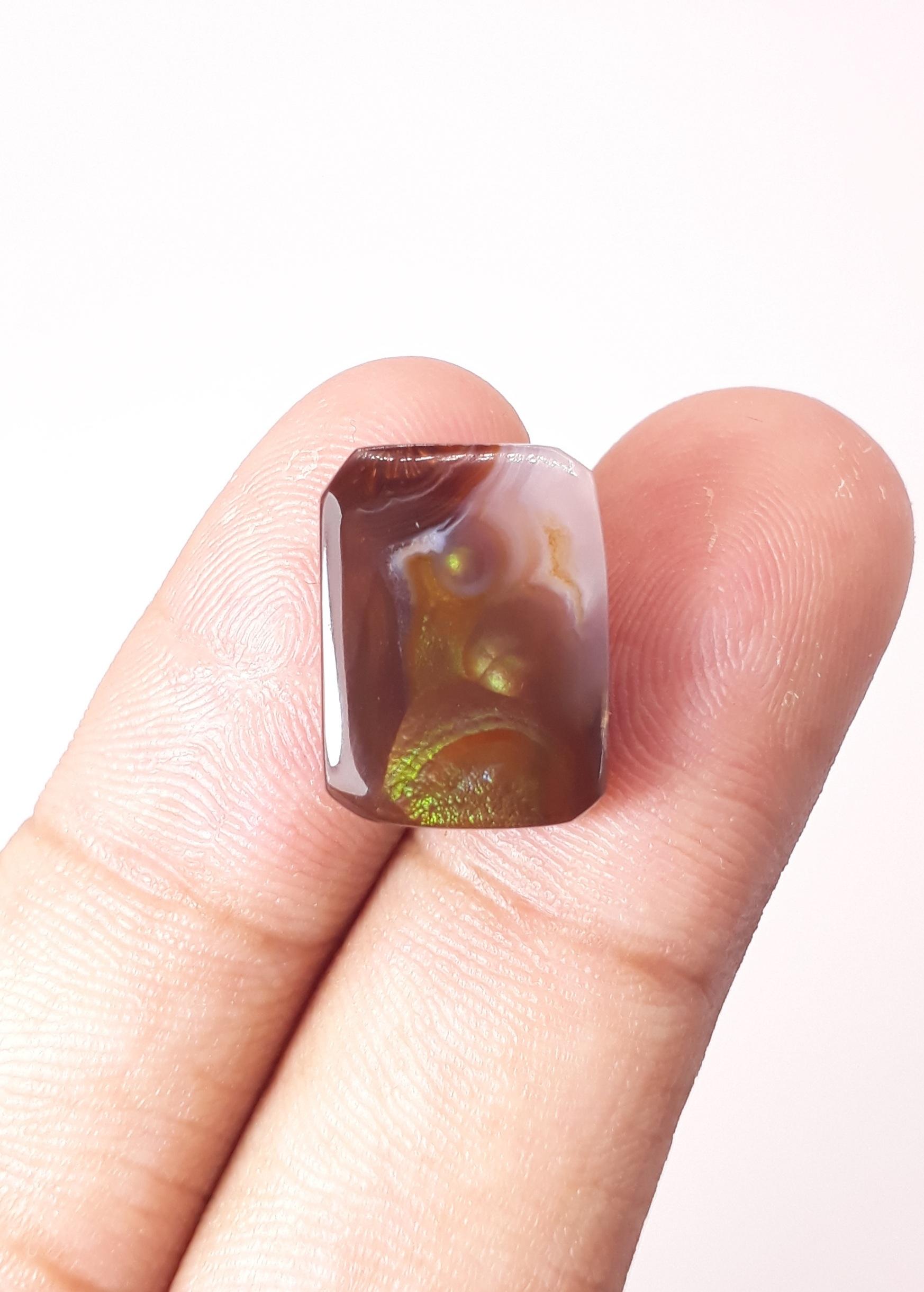 يعتبر عقيق النار المكسيكي عيار 13.7 قيراط هدية فريدة مثالية وأكثر ندرة من الألماس. يظهر شكله المستطيل وأبعاده 17 × 12.5 ملم لونه الأخضر الساطع، مما يجعله فريدًا من نوعه حقًا.
