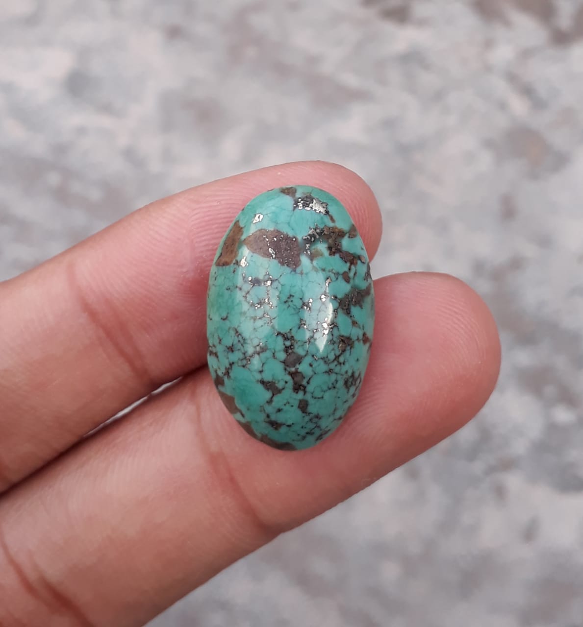 13.7 قيراط من الفيروز الطبيعي، فيروزي مصفوفة خضراء، شكل بيضاوي، الأبعاد - 20 × 12 ملم