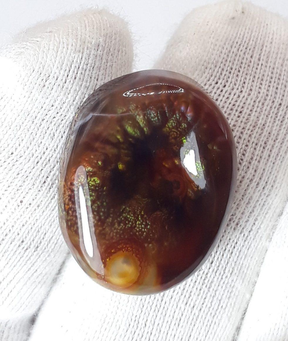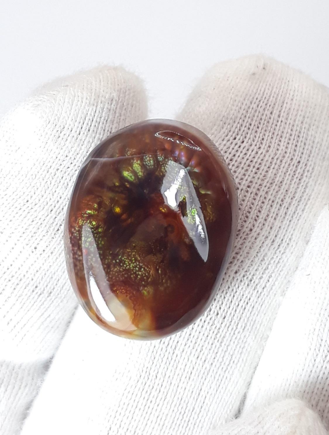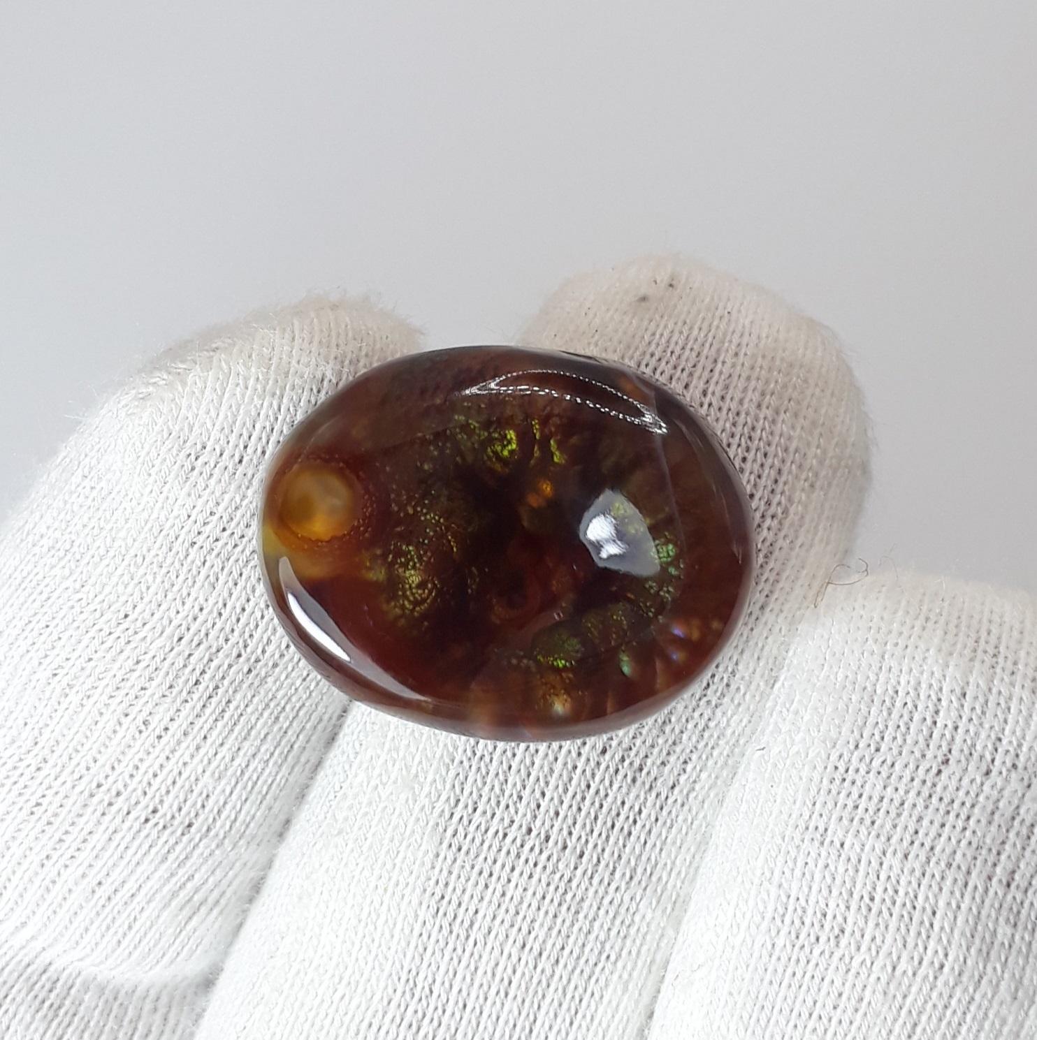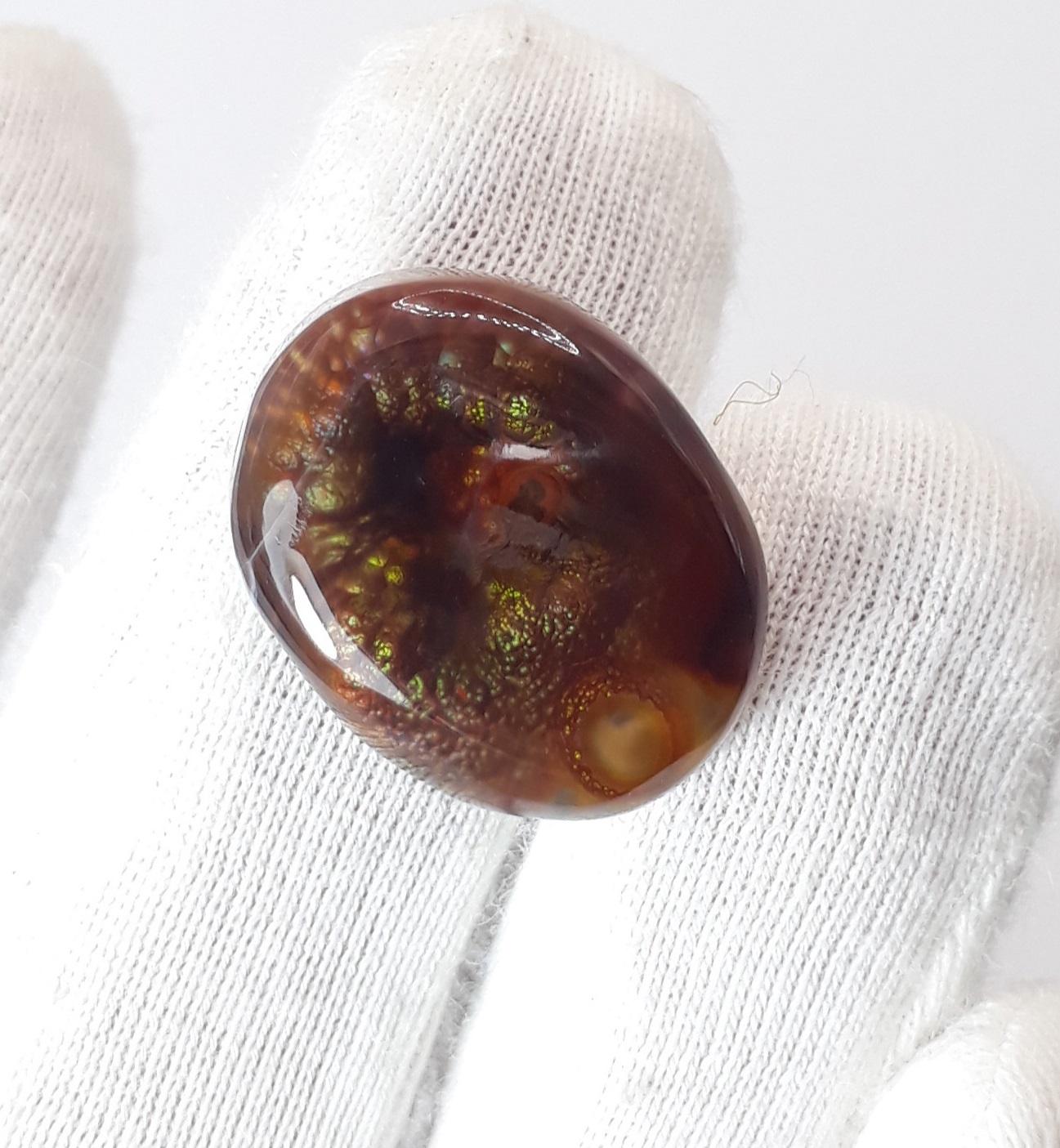 يعتبر عقيق النار المكسيكي هذا الذي يبلغ وزنه 16.5 قيراط جوهرة نادرة ومثالية لصناعة المجوهرات. يبلغ حجم شكل كابوشون البيضاوي 20 × 15.7 ملم، مما يسمح باستخدام متعدد الاستخدامات إما كقلادة أو خاتم. هدية مثالية لأي جامع أو عشاق المجوهرات.