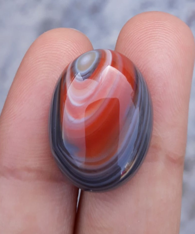 خطوط تجريدية 16 قيراط في كابوشون العقيق بعين صغيرة - عقيق السليماني - 20x15 ملم