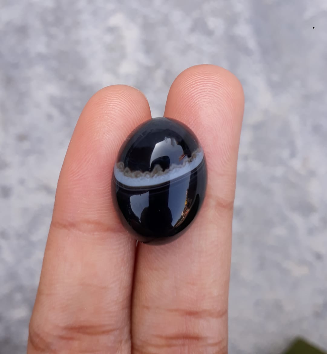 يتميز كابوشون العقيق الأسود الطبيعي هذا بلمسة نهائية ناعمة ومصقولة. لونها الداكن المتطور وتصميمها يجعلها إضافة مذهلة لأي مجموعة مجوهرات. من المؤكد أنها ستضيف لمسة فاخرة إلى أي ملابس.