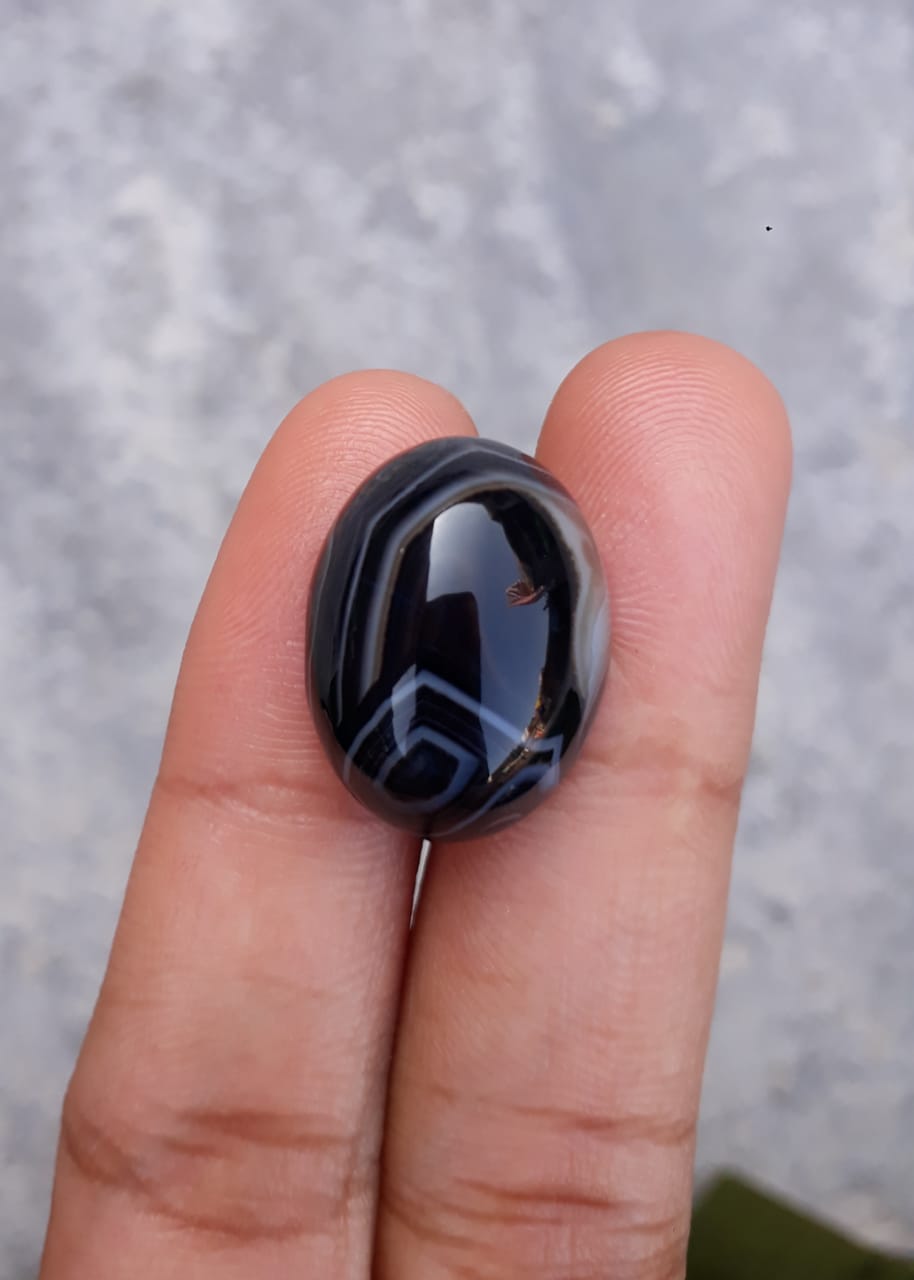 18.5 قيراط أونيكس أسود - حجر كريم أونيكس جميل - عقيق أونيكس - 21x18 ملم