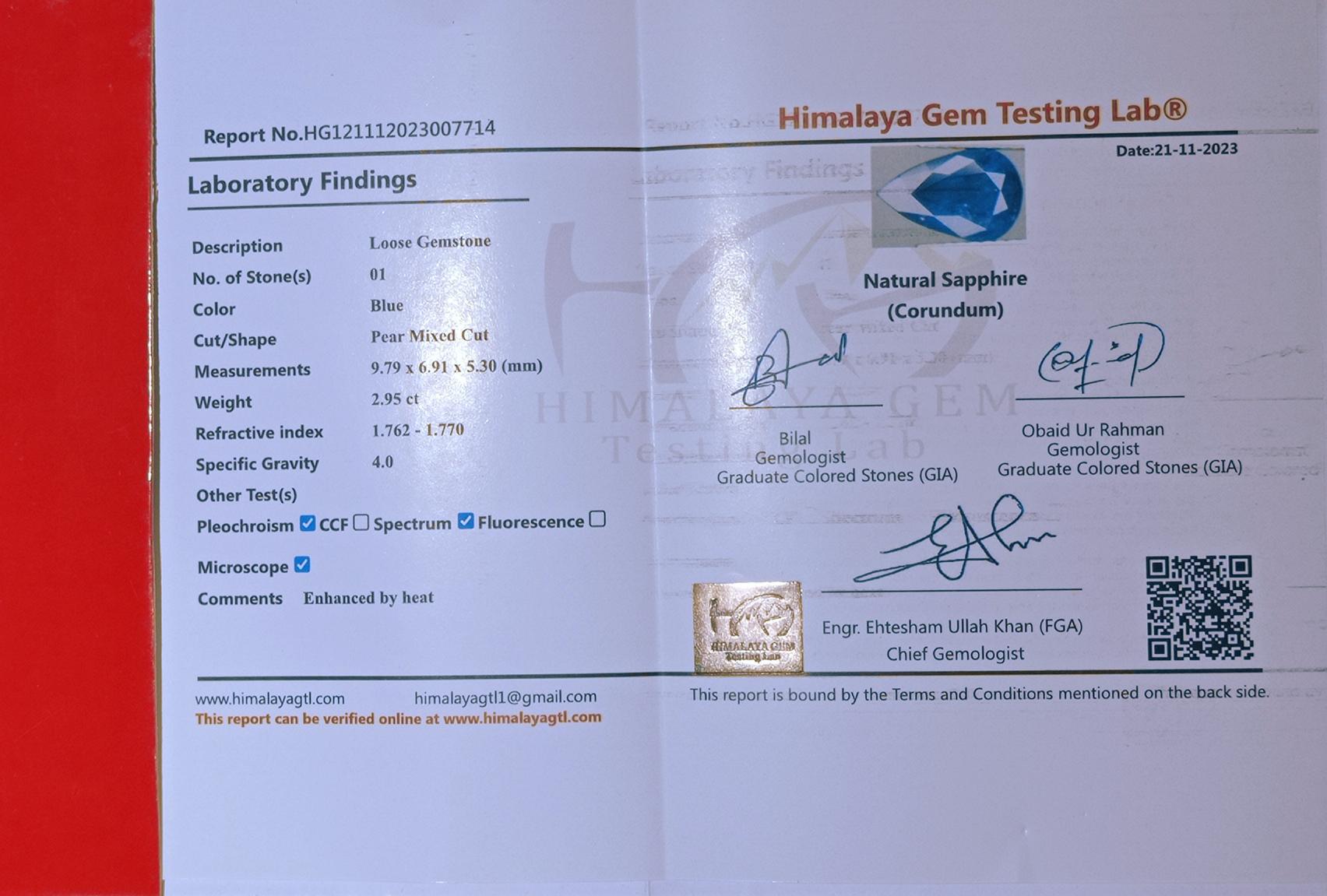 2.95 قيراط من الياقوت السيلاني المعتمد للبيع - الياقوت الأزرق الطبيعي - حجر بخت شهر سبتمبر