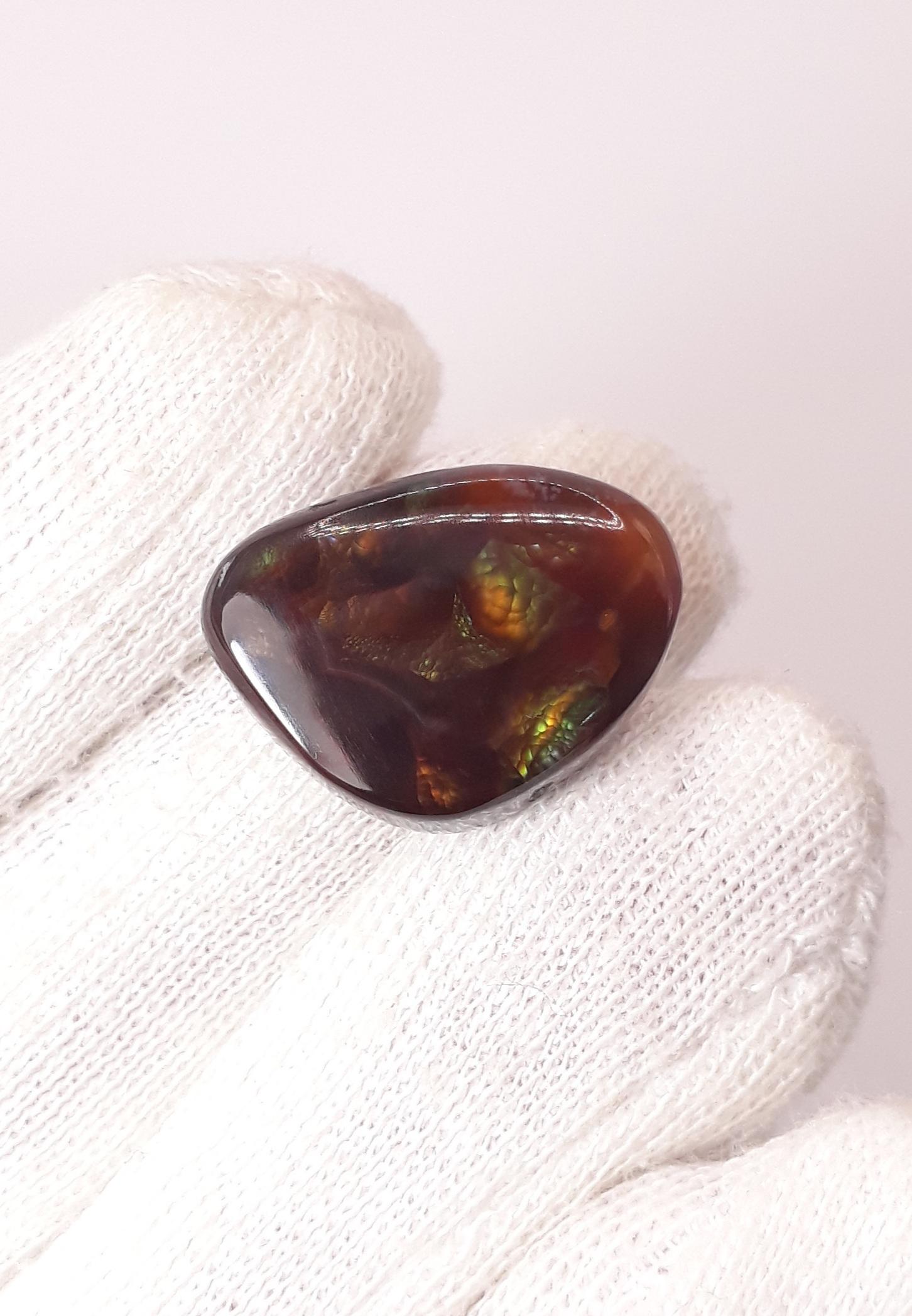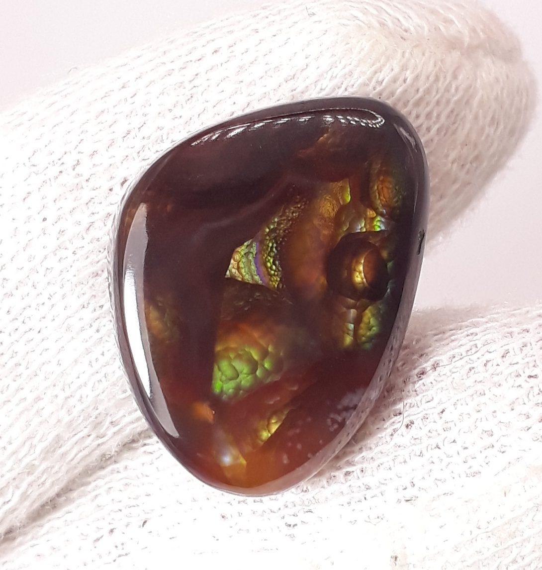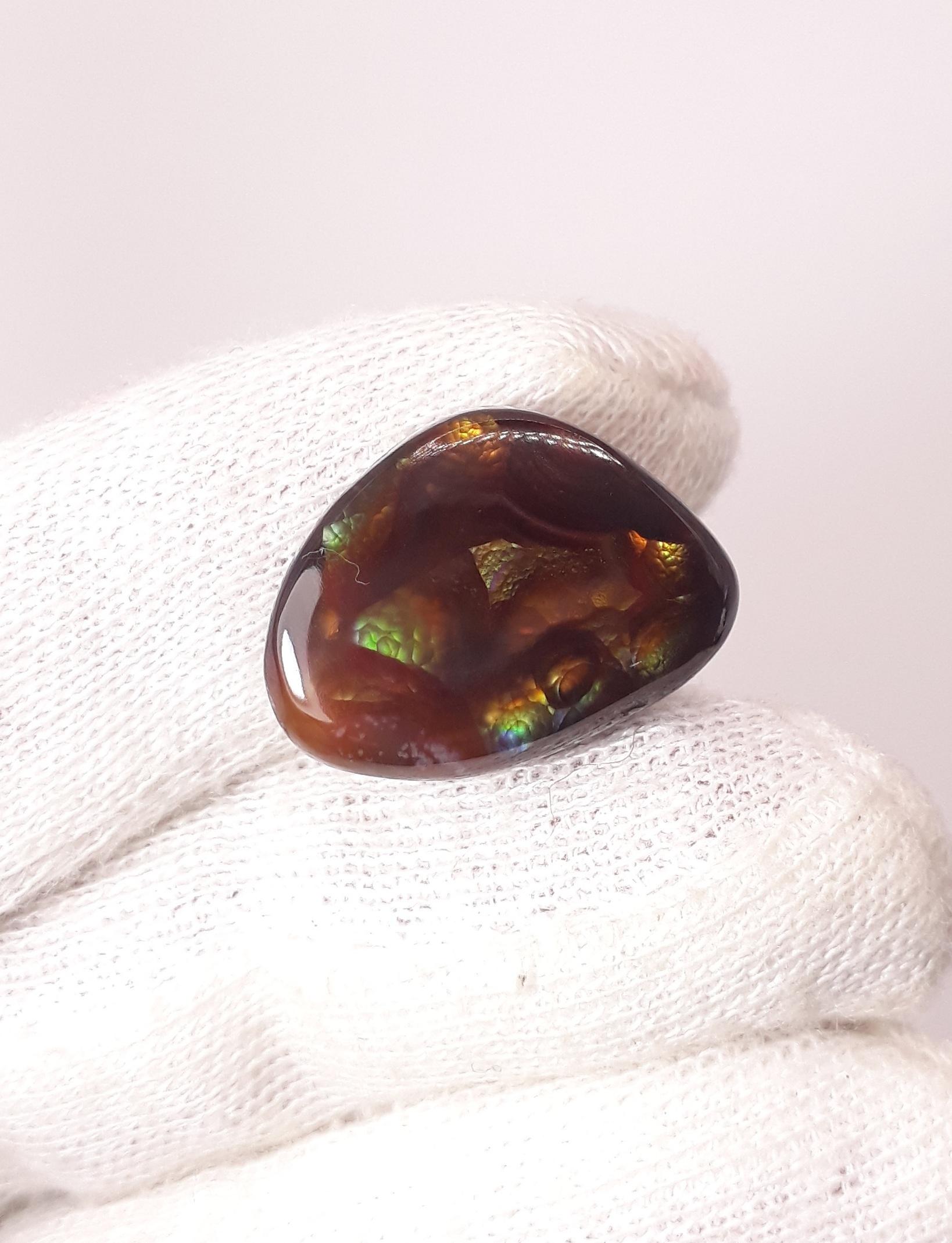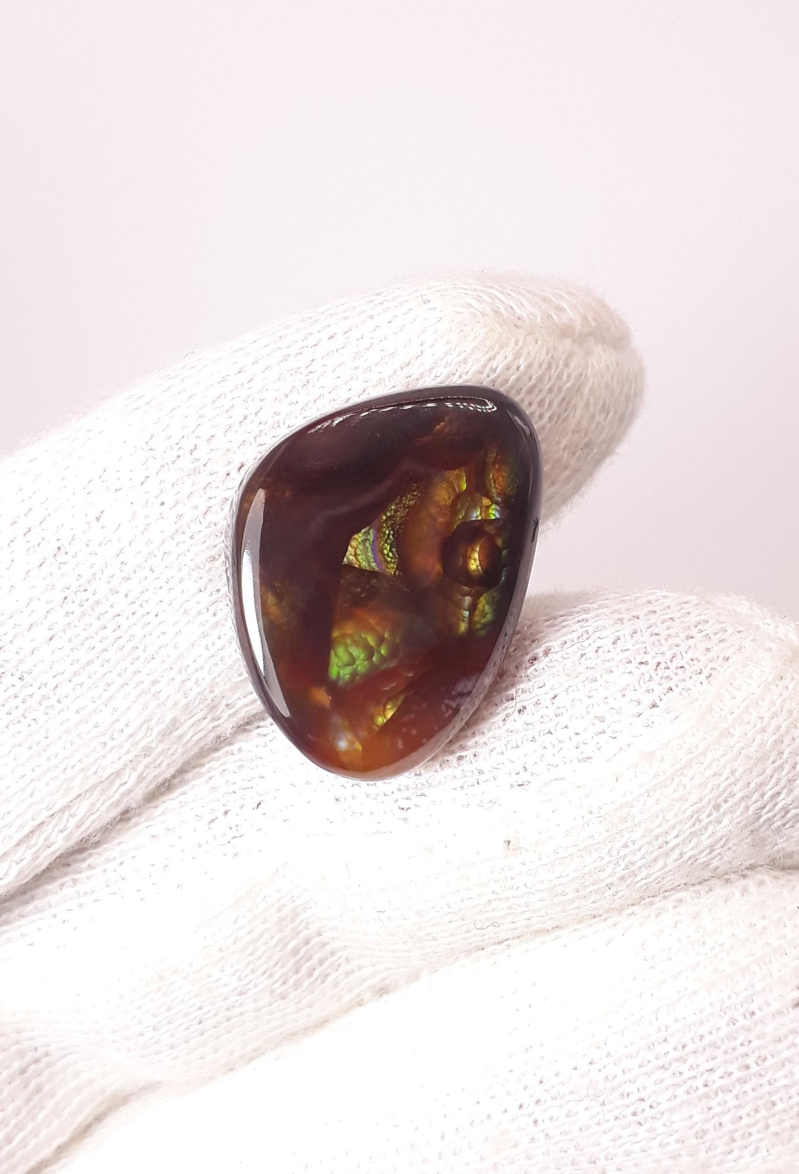 يعتبر هذا الكابوشون السائب من العقيق الناري عيار 20 قيراطًا أندر من الألماس، مما يجعله حجرًا كريمًا رائعًا وقيمًا. مع لون عقيق قوس قزح الجميل وأبعاد 22 × 16.5 ملم، هذه قطعة فريدة ومرغوبة حقًا.