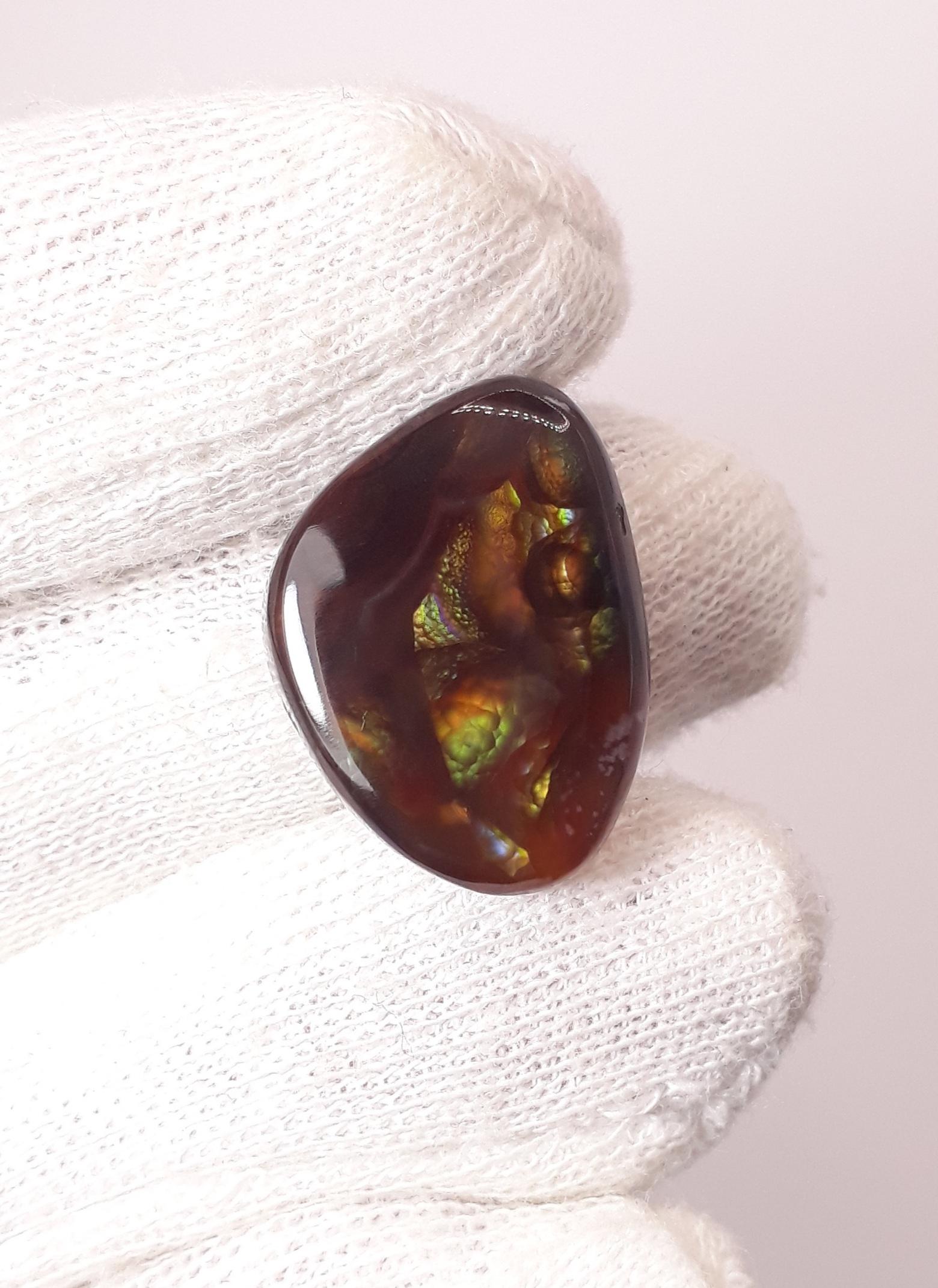 20 قيراط من العقيق الناري كابوشون فضفاض - العقيق الناري قوس قزح - العقيق الناري المكسيكي، العقيق الناري النادر - حجر كريم نادر من الماس، الأبعاد - 22 × 16.5 ملم