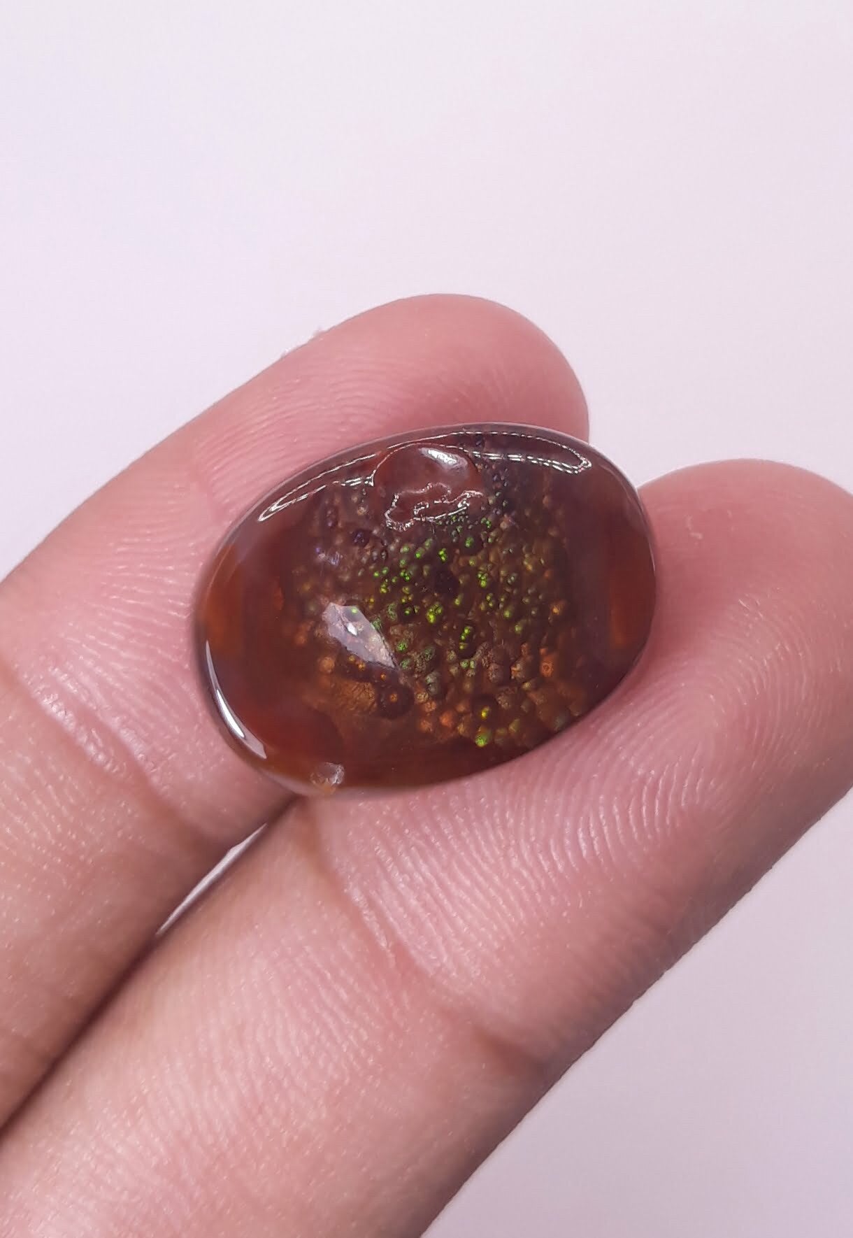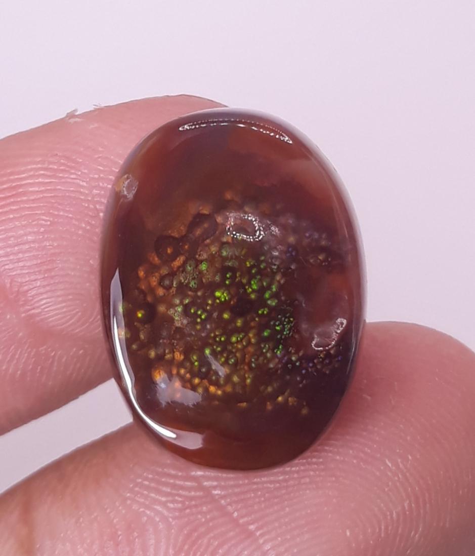 عقيق ناري فقاعي ملون 21.5 قيراط، عقيق ناري نادر - هدية مثالية من الأحجار الكريمة، حجر كريم نادر من الألماس، الأبعاد 21 × 16 مم