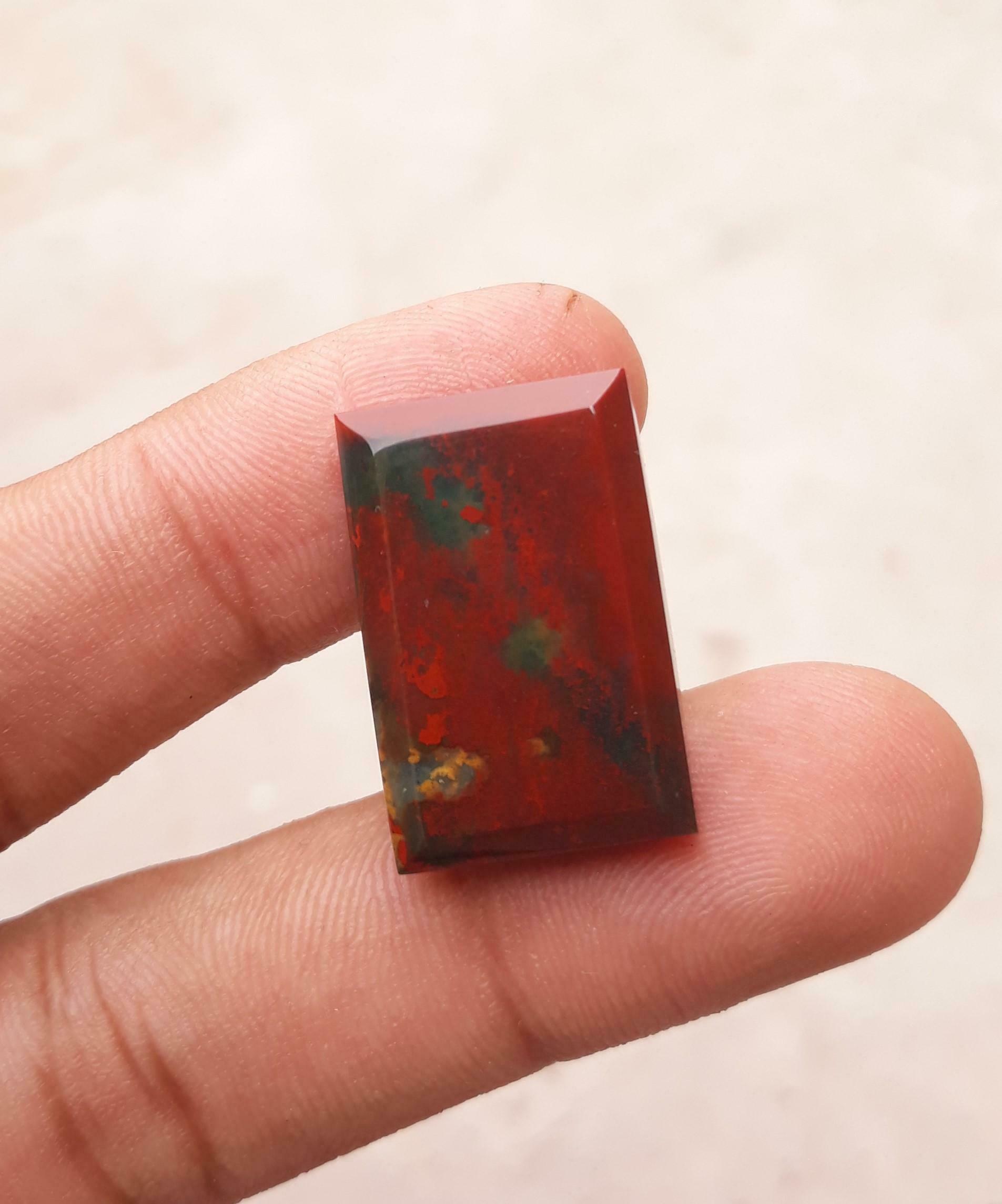 حجر دم طبيعي عالي الجودة 31.6 قيراط - الهليوتروب - الأبعاد -24.6 مم × 17.3 مم