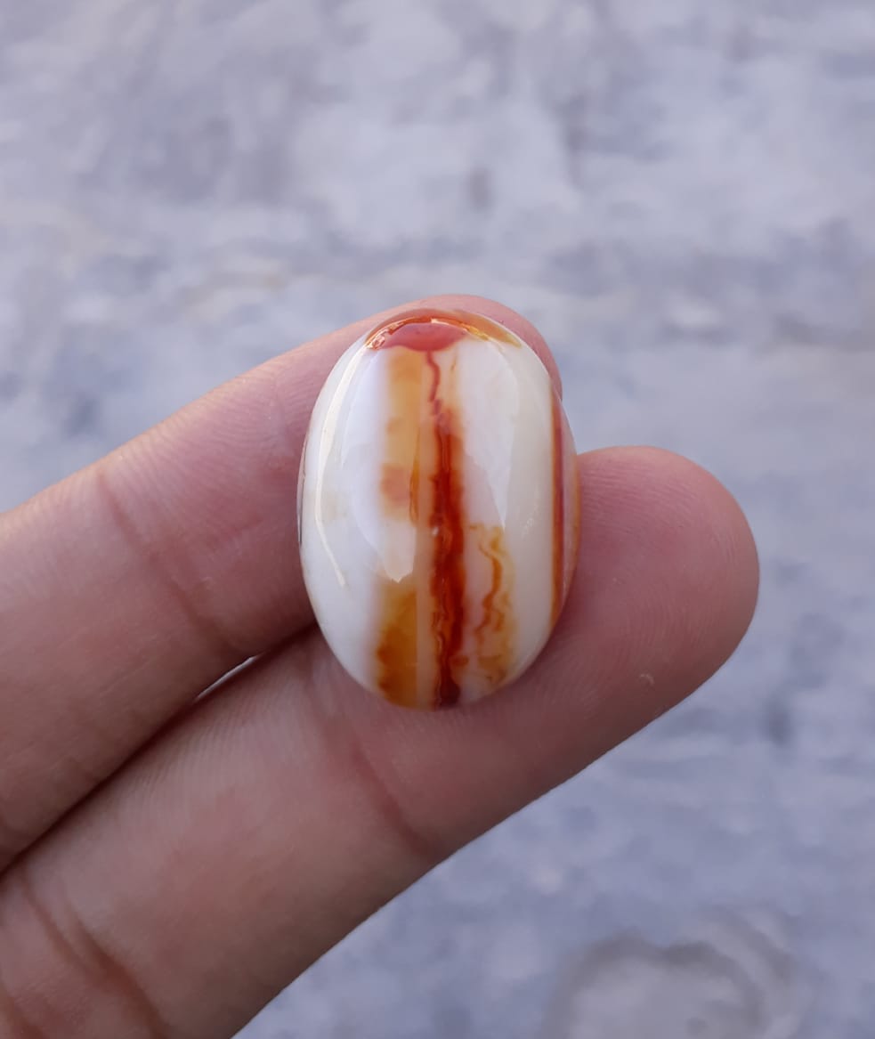 هذا العقيق ذو النمط التجريدي - عقيق السليماني هو قطعة فريدة من نوعها، مكونة من العقيق الطبيعي. تضيف أنماطه ذات النطاقات والفريدة من نوعها لمسة خاصة تجعل هذا الحجر متميزًا عن العقيق العادي. قم بدمج هذا في مجوهراتك للحصول على مظهر فريد حقًا.