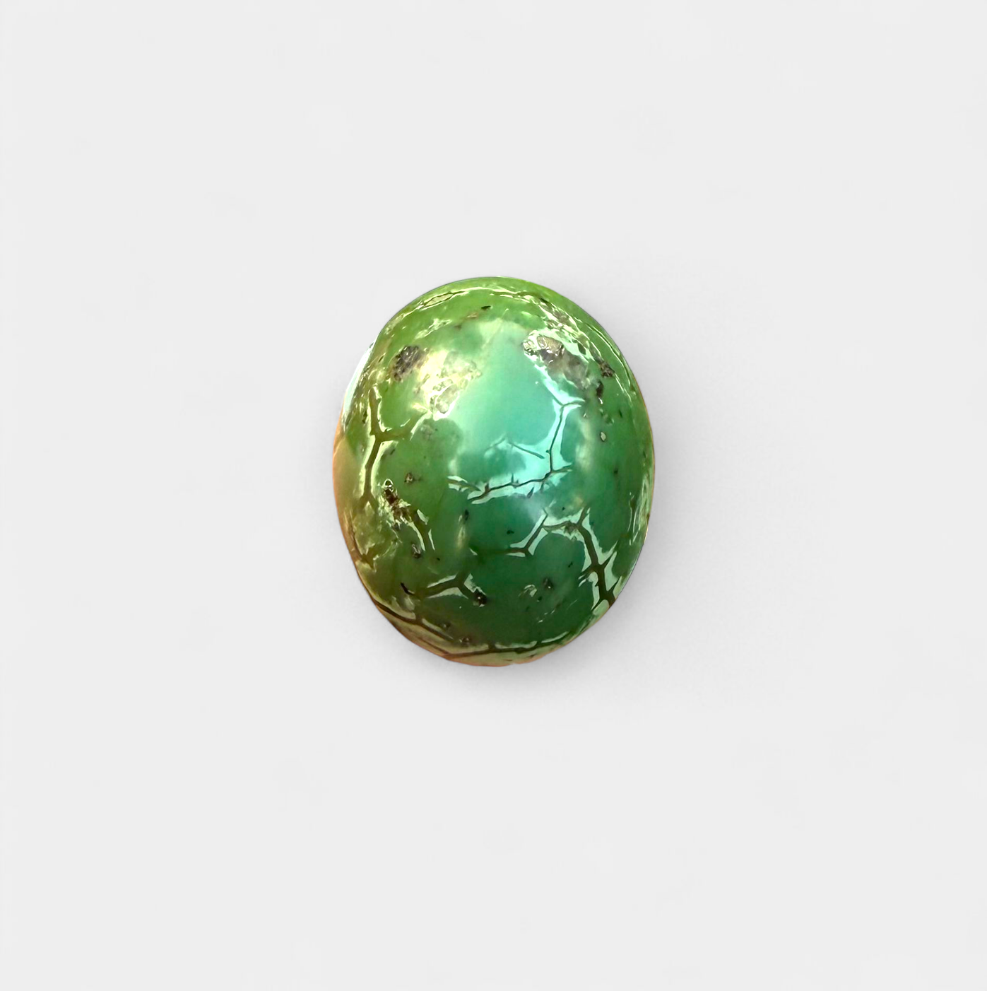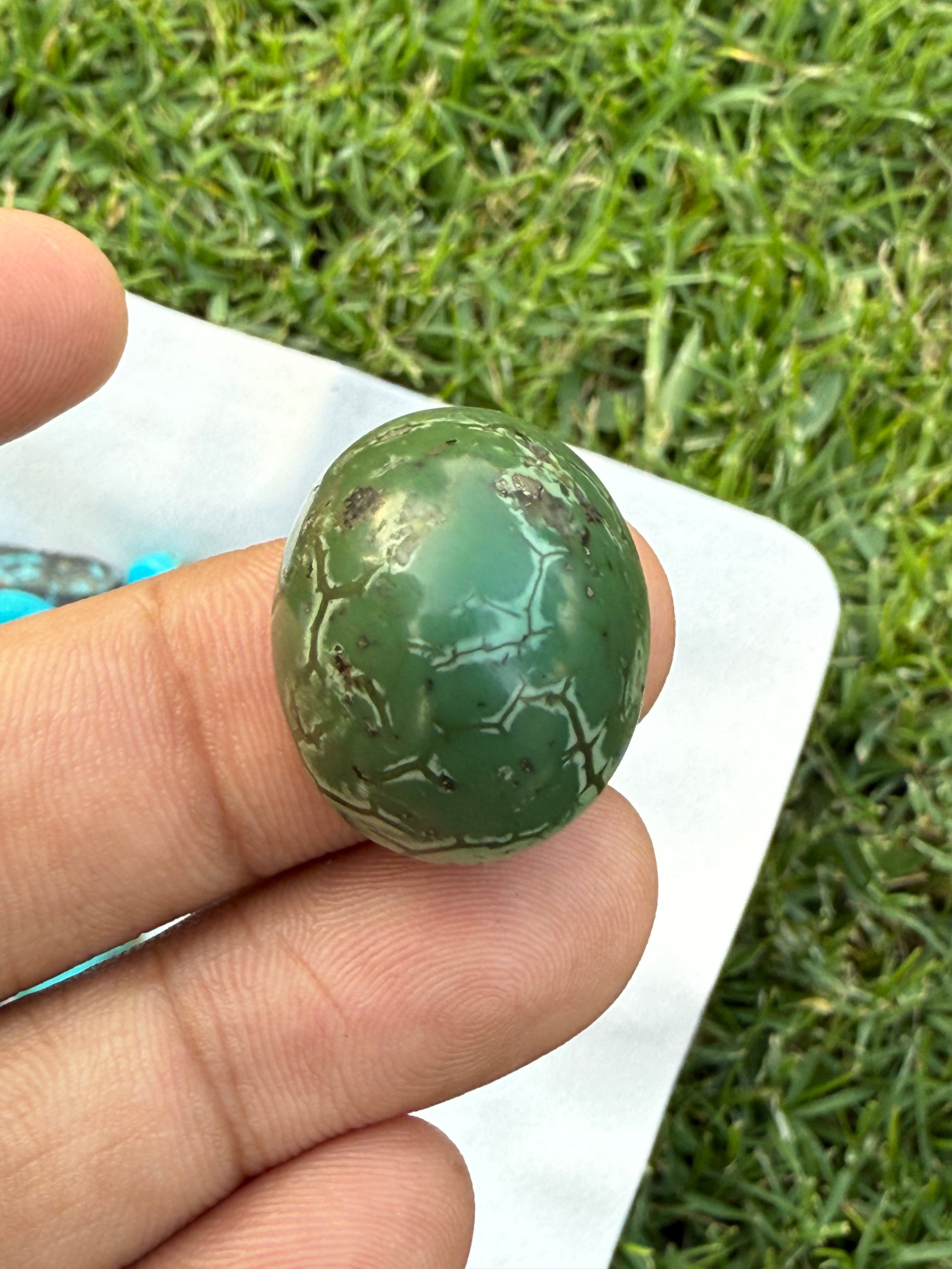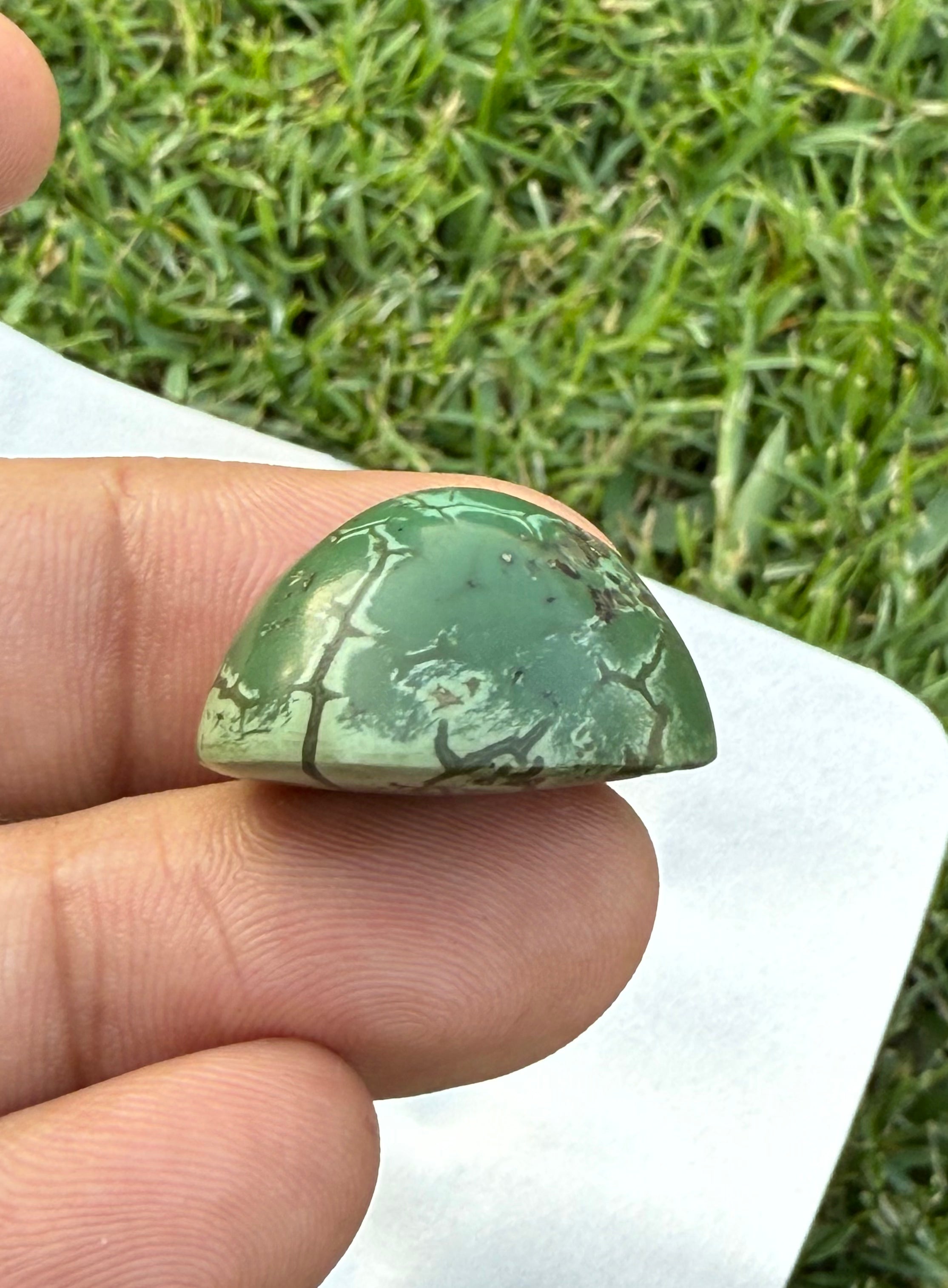 حجر فيروزي طبيعي عيار 28 قيراطًا مع البيريت، أبعاد الحجر 25×14 مم