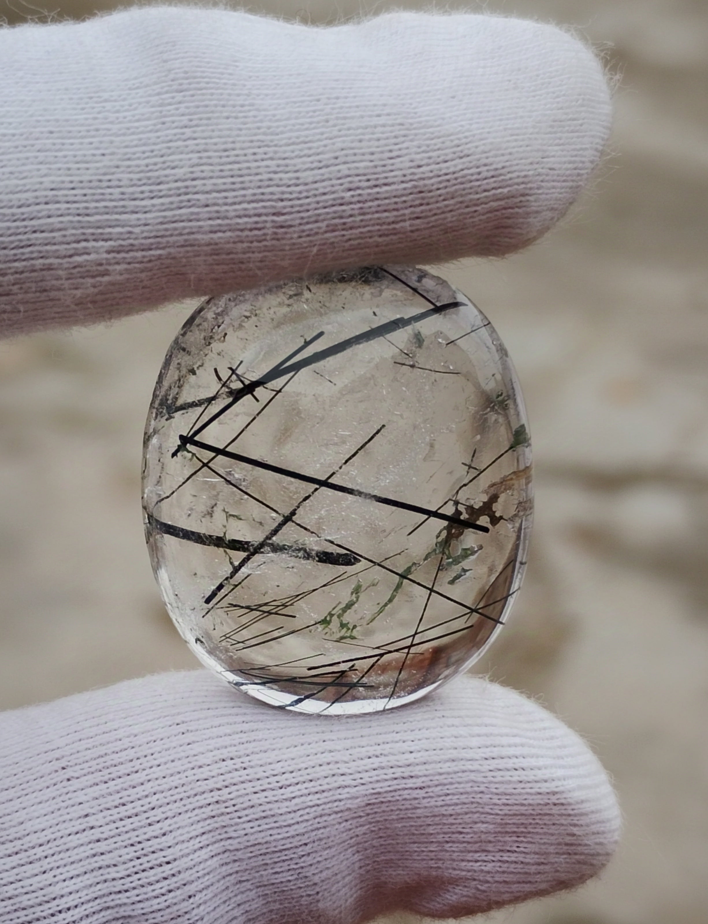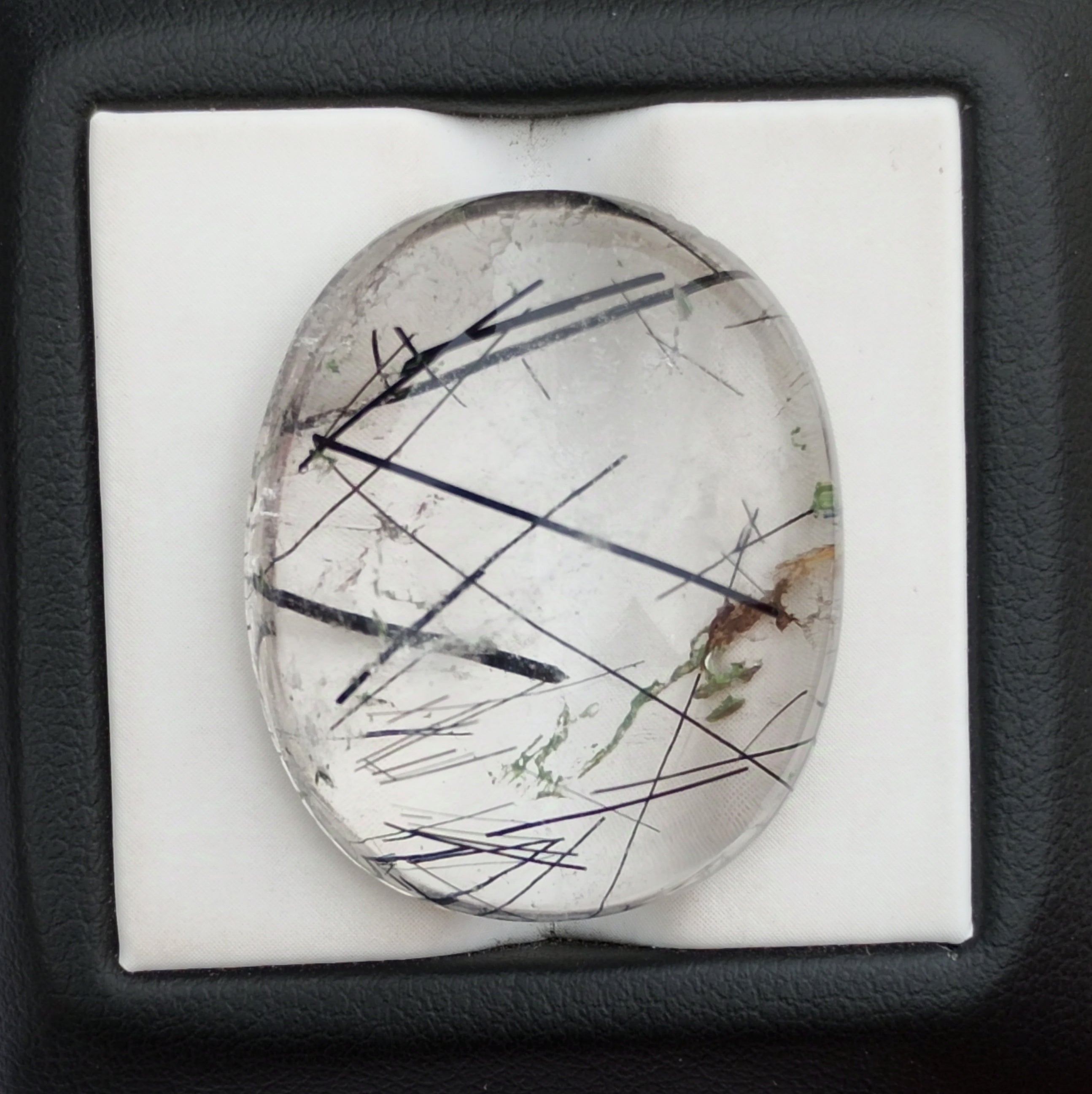 48 قيراطًا من الكوارتز التورماليني الأسود - كوارتز روتيل أسود كابوشون - كوارتز روتيل