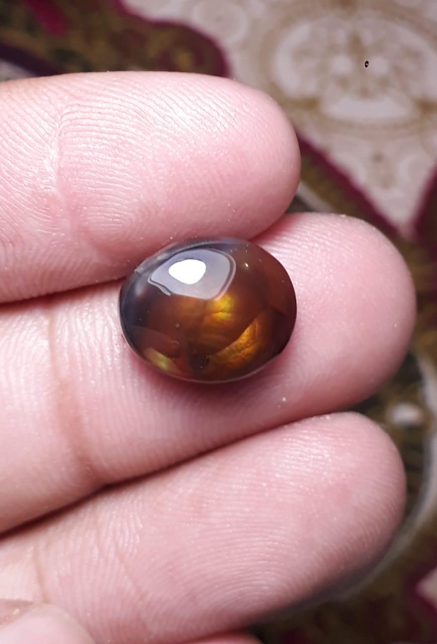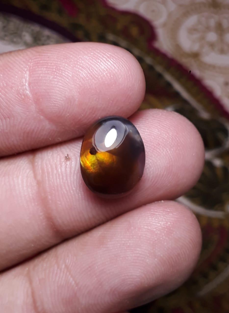 عقيق ناري نادر 6.1 قيراط، عقيق ناري كابوشون أصفر بيضاوي - هدية مثالية، الأبعاد 13 × 10 ملم