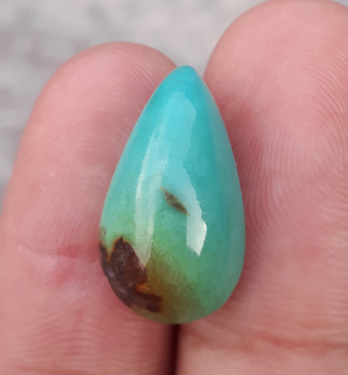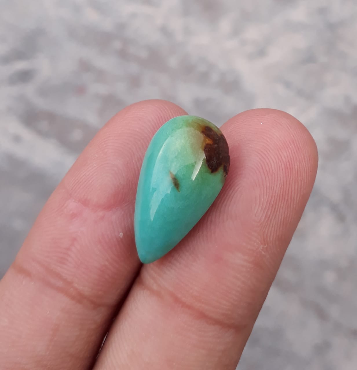 تم تصميم كابوشون الفيروز الطبيعي والأخضر ماتريكس الفيروزي بدقة، ويتميز بشكل كمثرى فريد ويبلغ مقاسه 21 × 12 ملم. يعتبر حجر فيروزا الحقيقي هذا مثاليًا لصنع قطع فريدة من المجوهرات.