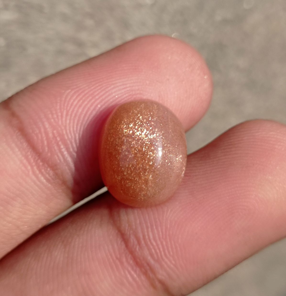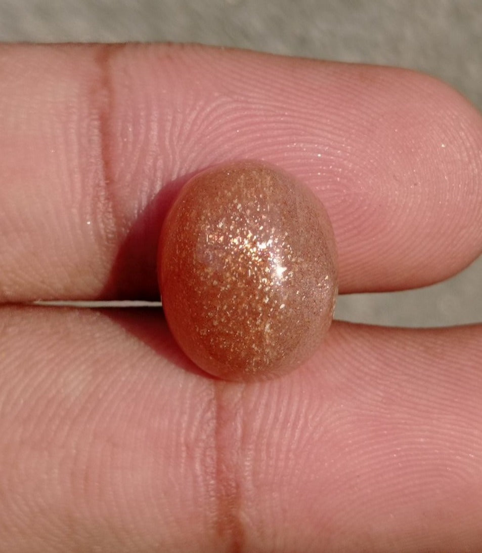 كابوشون من حجر الشمس الطبيعي 9.6 قيراط - هيليوليت - الفلسبار المغامر - حجر بخت شهر أغسطس - 15x12x7 ملم