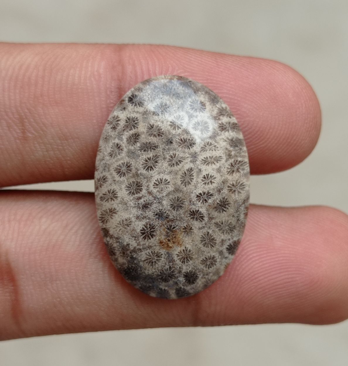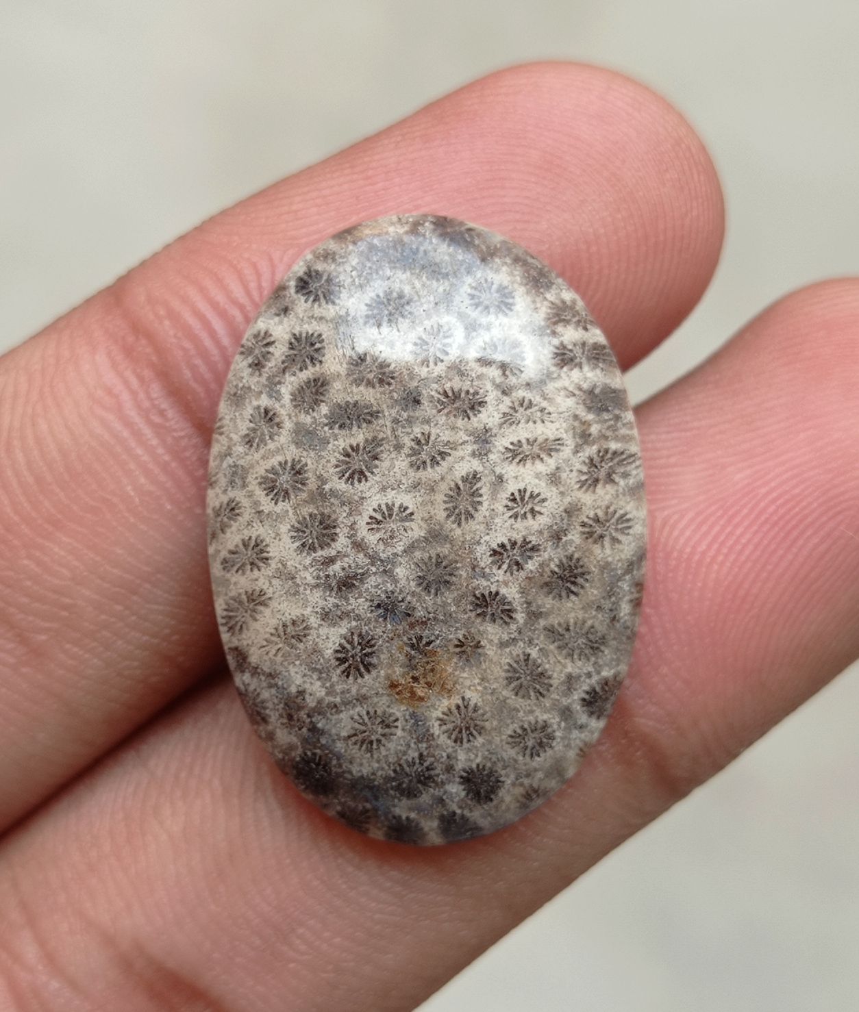 المرجان العقيق - المرجان المتحجر - الأحفور المرجاني كابوشون - 29x20x5mm
