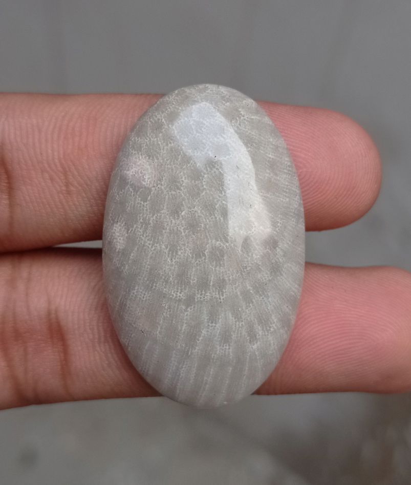 المرجان العقيق - المرجان المتحجر - الأحفور المرجاني كابوشون - 39x24x7mm
