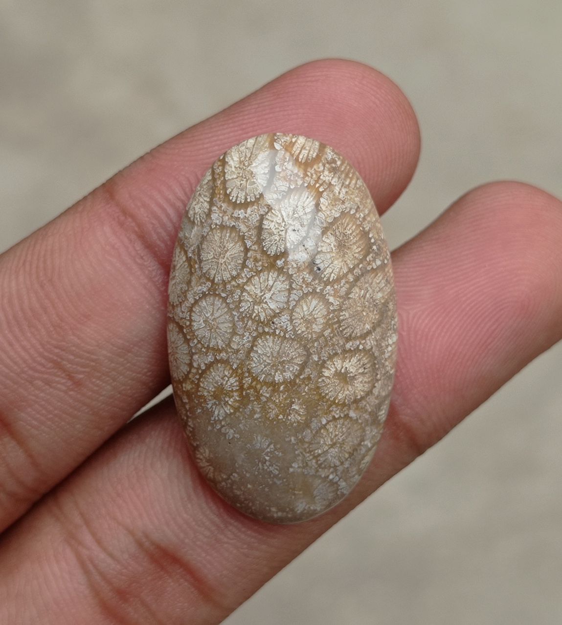 المرجان العقيق - المرجان المتحجر - الأحفور المرجاني كابوشون - 35x21x7mm