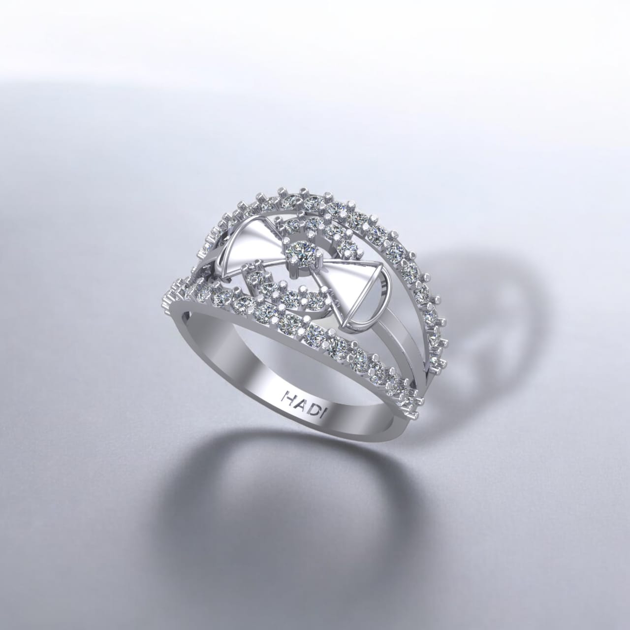 أضف لمسة من الأناقة والرقي لمجموعة مجوهراتك مع خاتم Fancy Bow Tie Diamonds . تتميز هذه القطعة الرائعة بتصميم ربطة عنق دقيقة، مزينة بألماس لامع يتألق مع كل حركة.