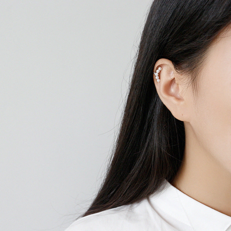 حلق غير مثقوب بخطوط لؤلؤية على شكل صدفة للفتيات (مفرد) - أقراط لؤلؤ فضية مطلية بالبلاديوم للنساء - أقراط لؤلؤ مثالية مع تغليف الهدايا