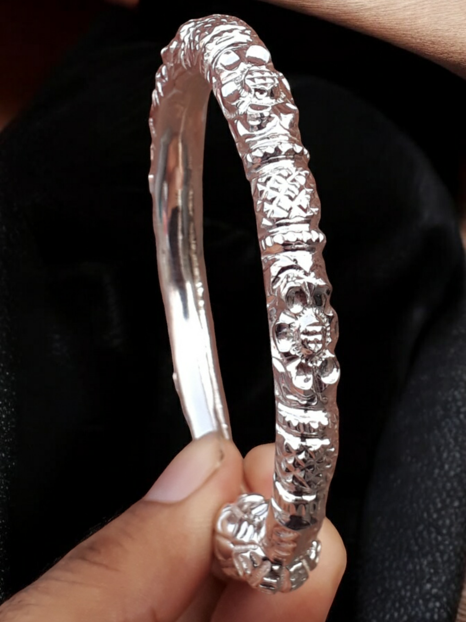 كل سوار مصنوع يدويًا بعناية فائقة، ويتميز بتصميمات معقدة تعكس فخامة وفن تلك الفترة. الشكل الجريء والأنيق لسوار Rajpooti يجعله قطعة مميزة، مثالية لأولئك الذين يقدرون التاريخ والحرفية الدقيقة.