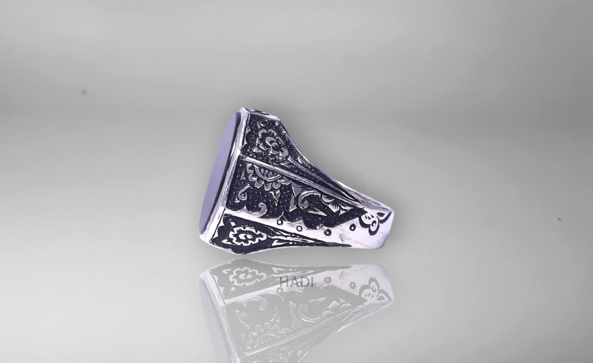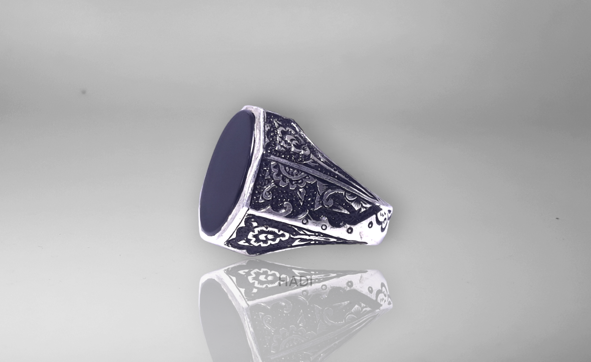 هذا الخاتم المصنوع يدويًا من الفضة الإسترليني والمصنوع من العقيق الأسود ومطلي بالذهب الأبيض عيار 14 قيراط للحصول على لمسة نهائية فاخرة. سيصبح تصميمها المعقد قطعة مميزة لا تُنسى في أي مناسبة.