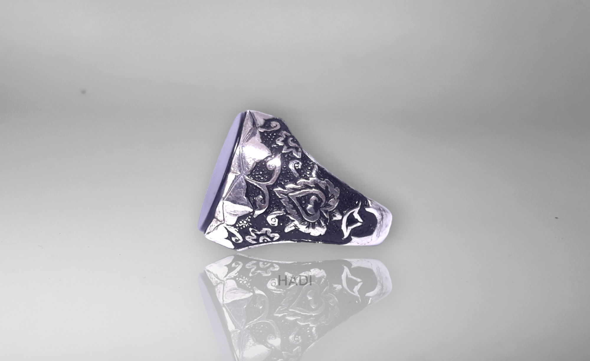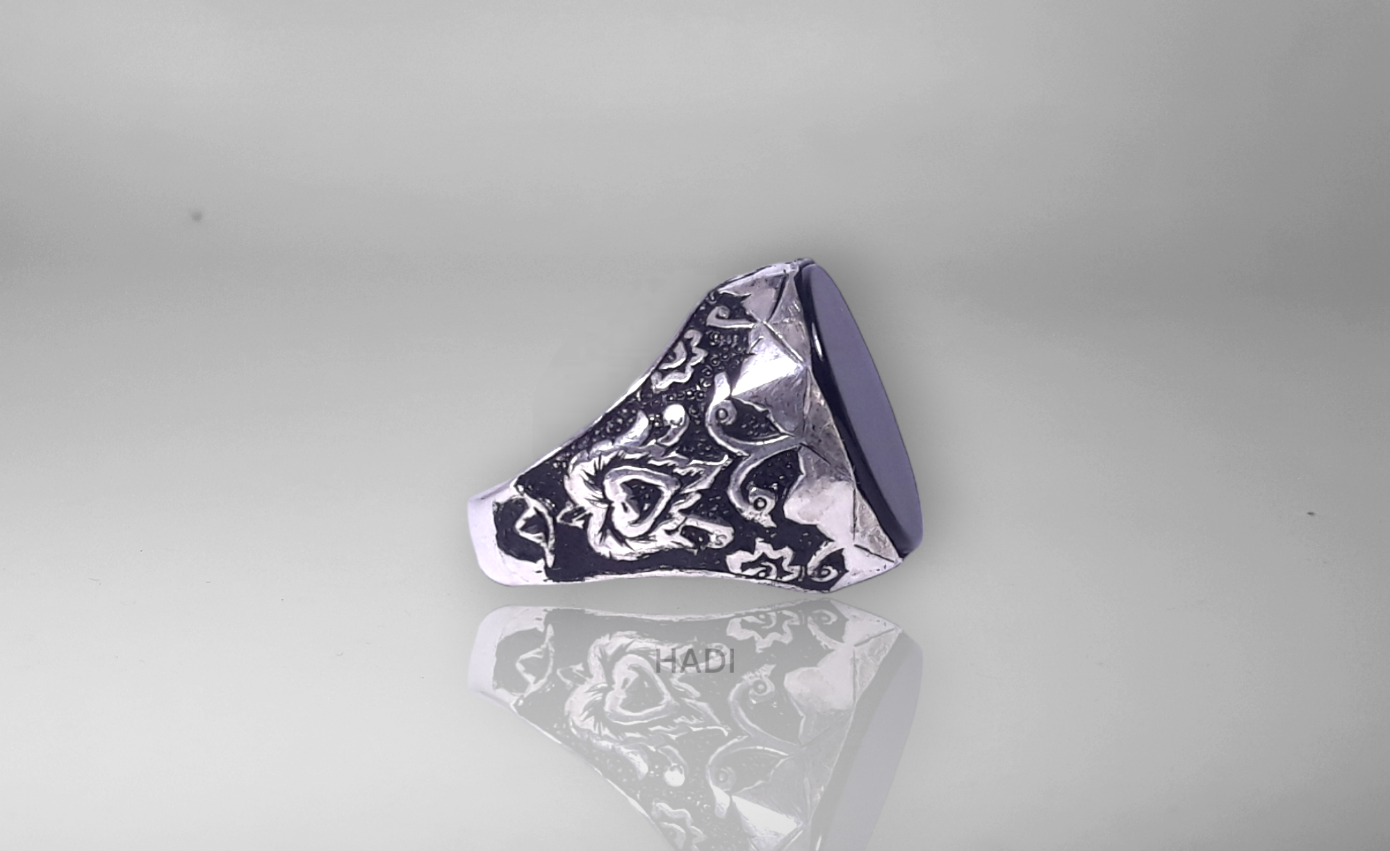 هذا الخاتم المصنوع يدويًا من الفضة الإسترليني والمصنوع من العقيق الأسود ومطلي بالذهب الأبيض عيار 14 قيراط للحصول على لمسة نهائية فاخرة. سيصبح تصميمها المعقد قطعة مميزة لا تُنسى في أي مناسبة.
