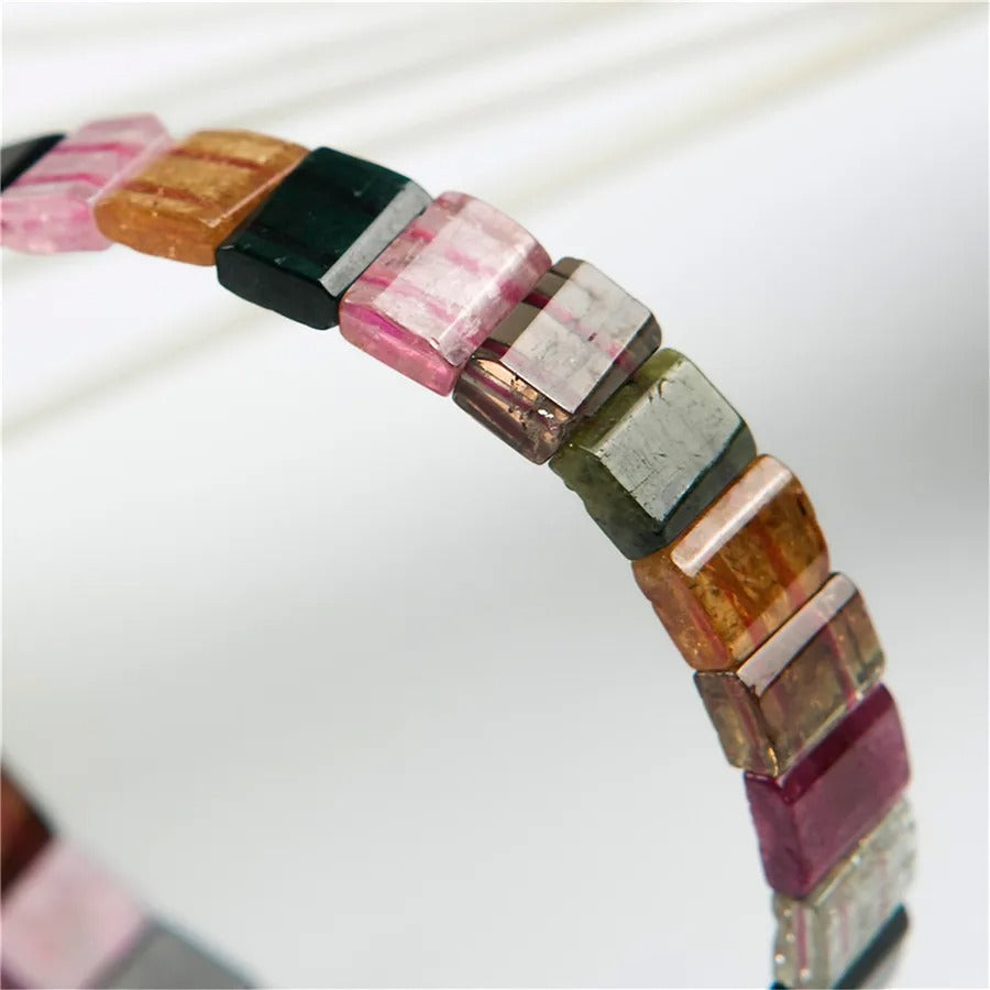 سوار من أحجار التورمالين الكريمة الملونة الطبيعية AAA، مجوهرات الإسورة، مقاسات الخرز 9*7*3 ملم