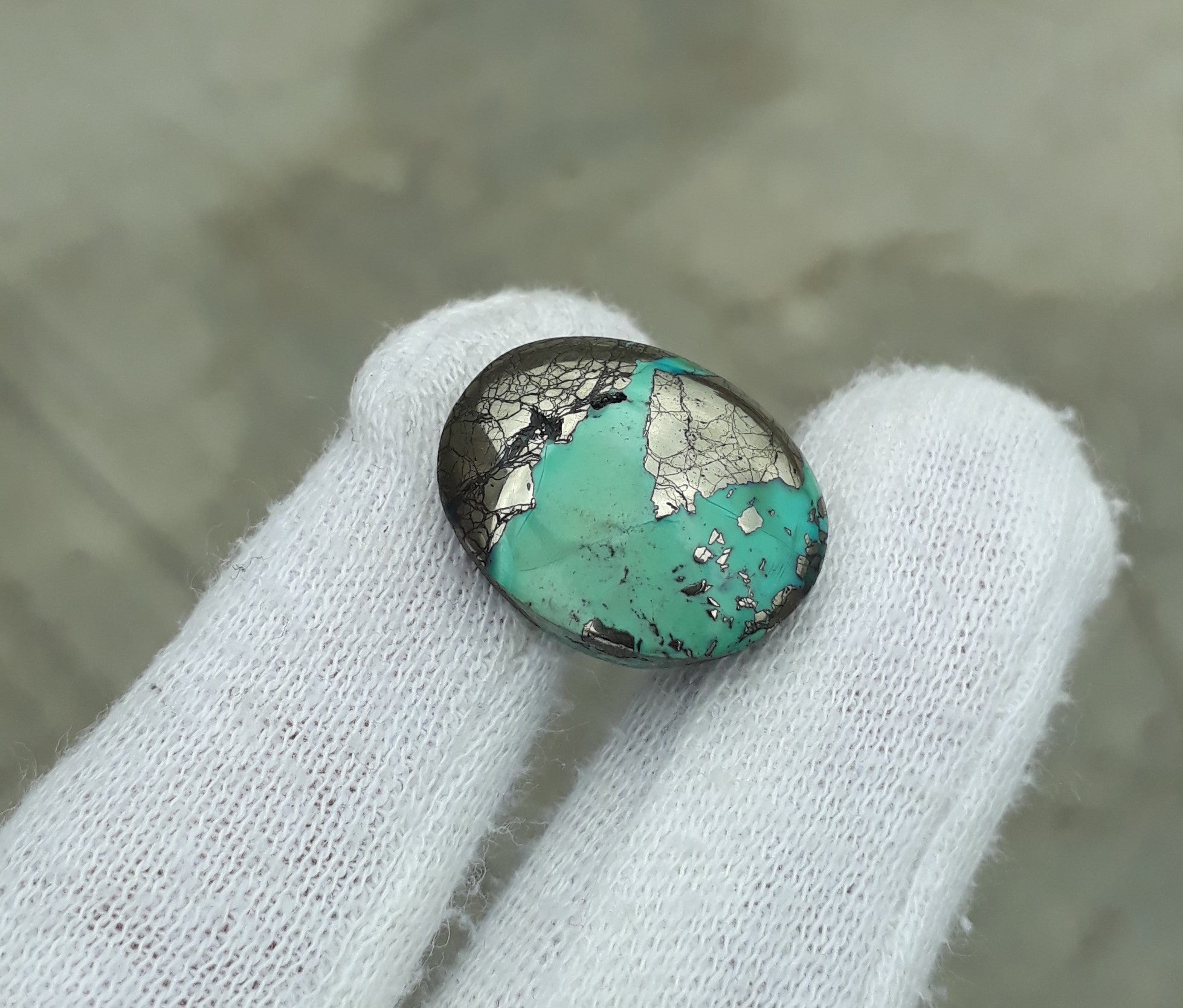 فيروز طبيعي معتمد مع البيريت - بلو ماتريكس فيروز - شاجري فيروزا -41.7 قيراط - 24 × 17 ملم