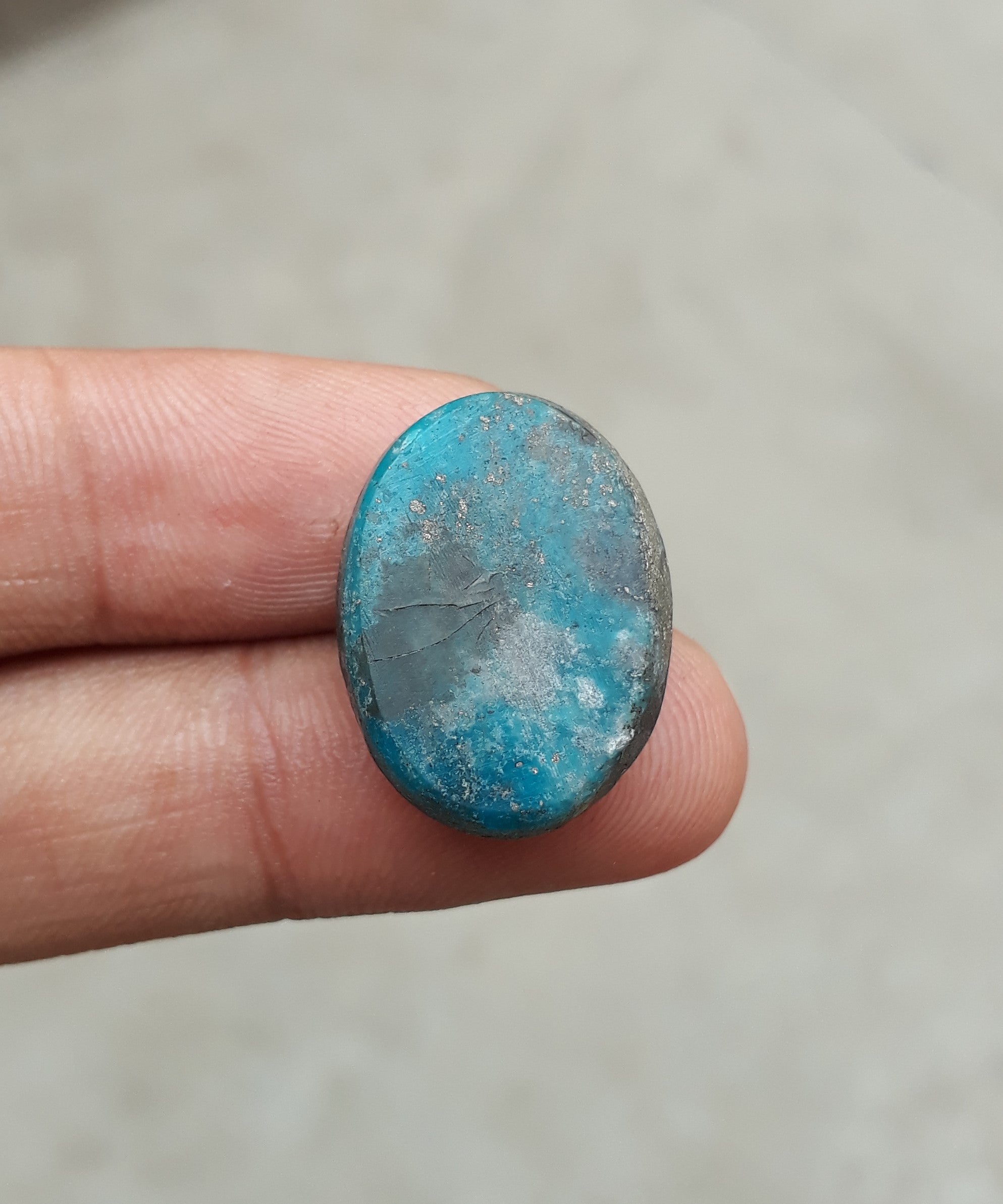 يتميز هذا الكابوشون الفيروزي الفارسي الكلاسيكي بلون أزرق داكن مذهل ومصفوفة البيريت المعقدة. تم قطع هذا الحجر بوزن 52.7 قيراط بشكل احترافي، وهو خيار مثالي لصنع مجوهرات جميلة أو استخدامه كمقتنيات. بفضل تصميمها اللافت للنظر، من المؤكد أنها ستضيف الجمال إلى أي قطعة.