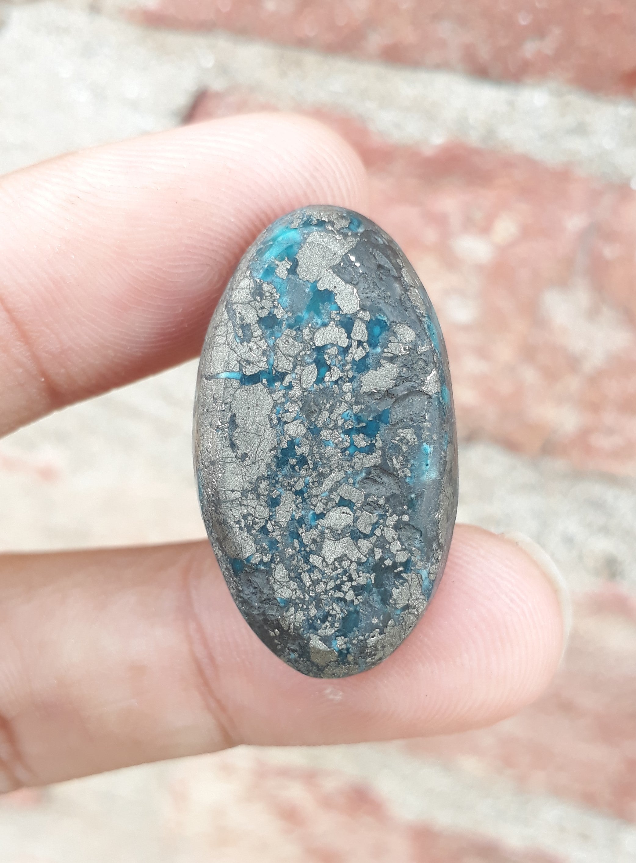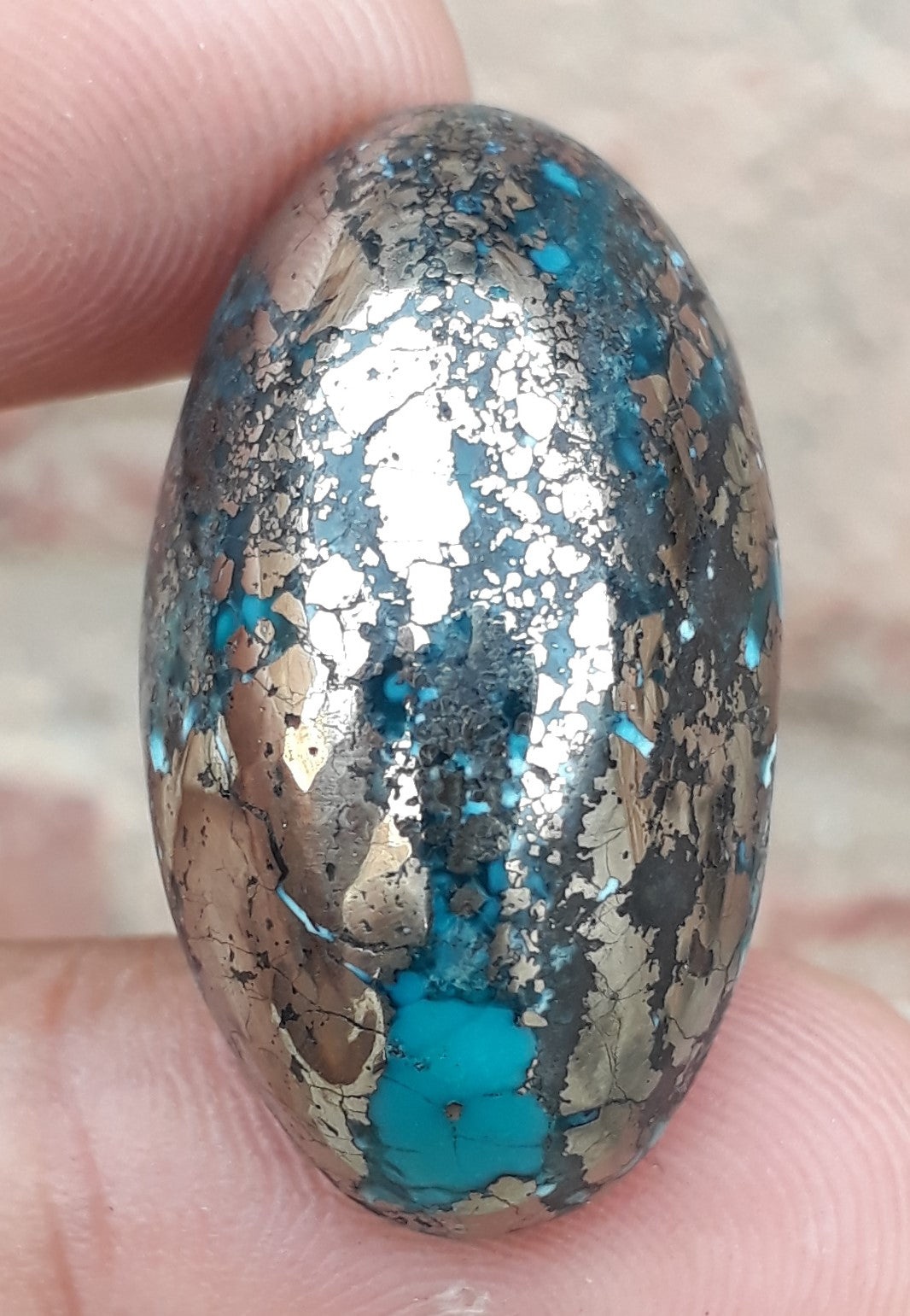 فيروز طبيعي معتمد مع البيريت - بلو ماتريكس فيروز - شاجري فيروزا -41.7 قيراط - 24 × 17 ملم
