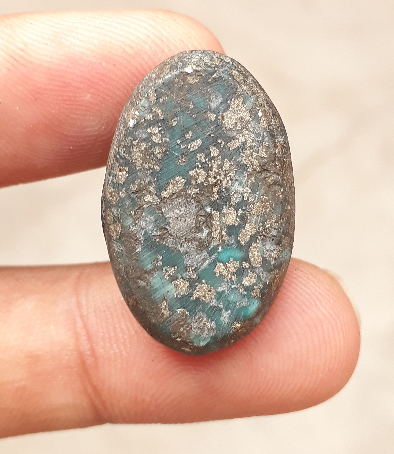 فيروز طبيعي معتمد مع البيريت - بلو ماتريكس فيروز - شاجري فيروزا -41.7 قيراط - 24 × 17 ملم