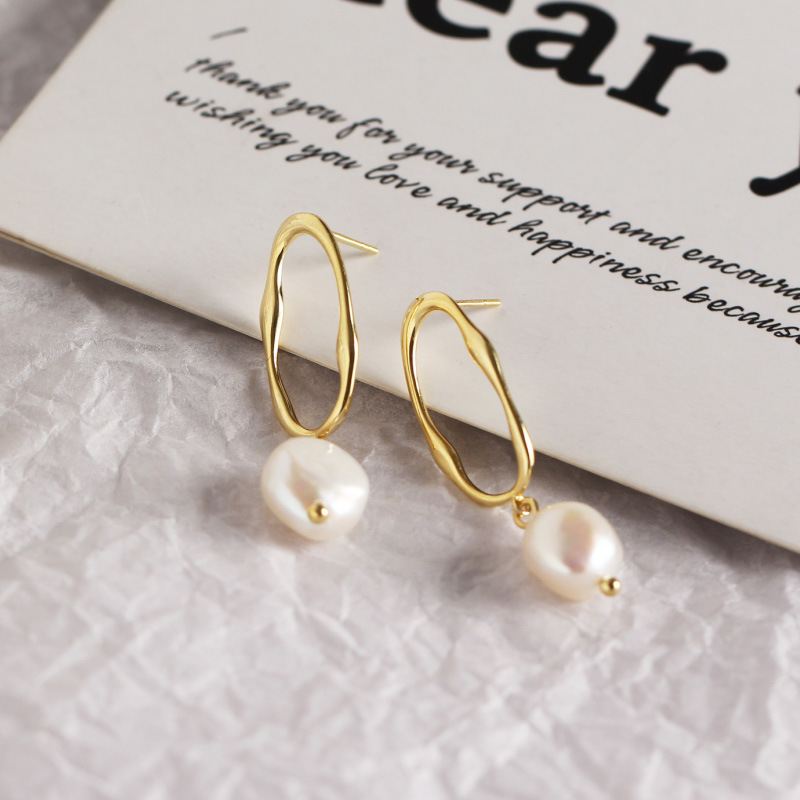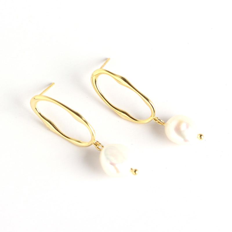 أقراط متدلية من اللؤلؤ الطبيعي الباروكي غير المنتظم للمكتب - أقراط لؤلؤ فضية مطلية بالذهب للنساء - أقراط لؤلؤ مثالية مع تغليف الهدايا