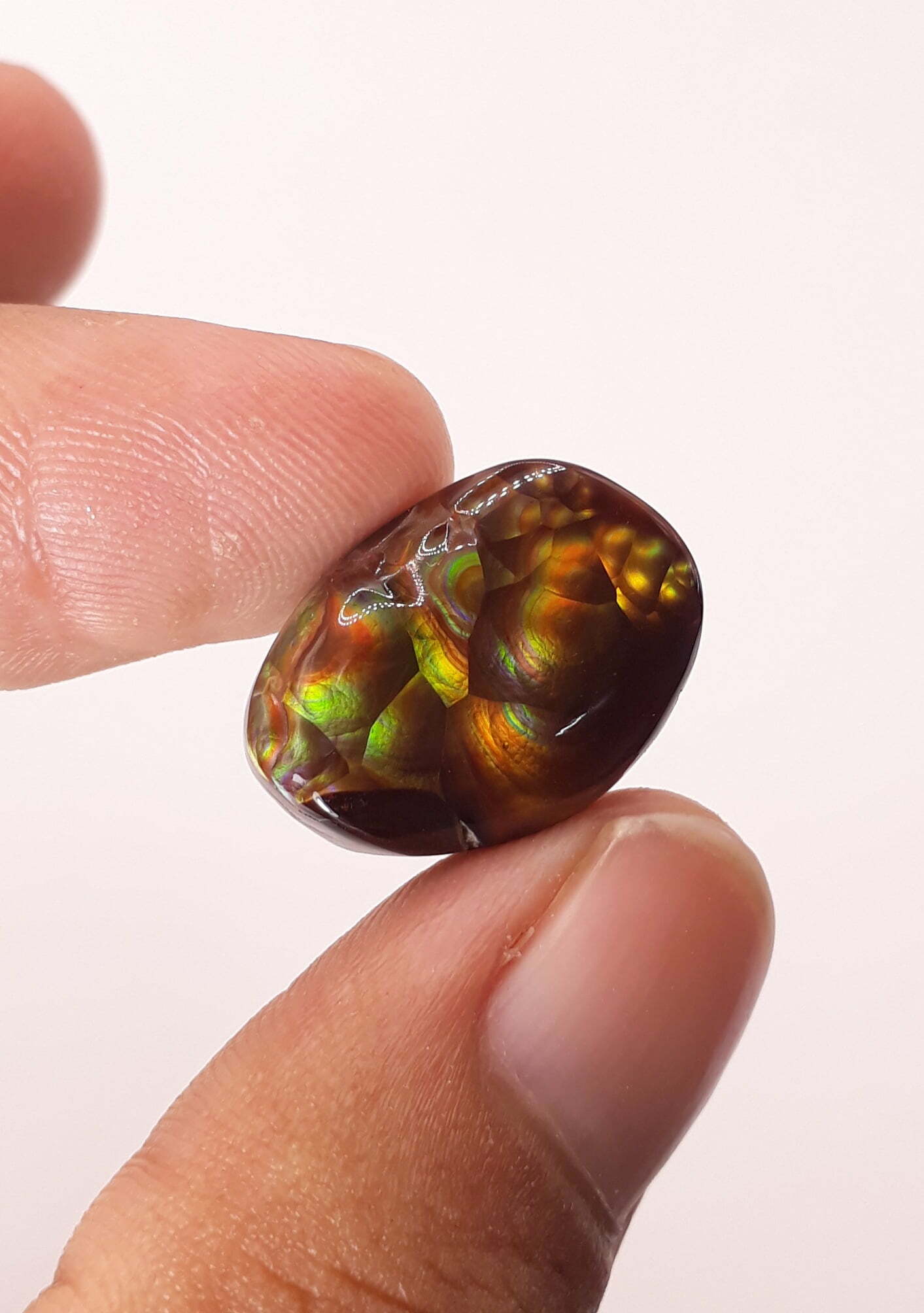 هذا الحجر الكريم من العقيق الناري المكسيكي ذو شكل قوس قزح الشامبانيا عيار 16.9 قيراط هو حجر نادر ذو شكل كابوشون بيضاوي، وأبعاد 20 × 14.5 ملم، وهو أكثر ندرة من الماس. إنها الهدية المثالية لشخص مميز.