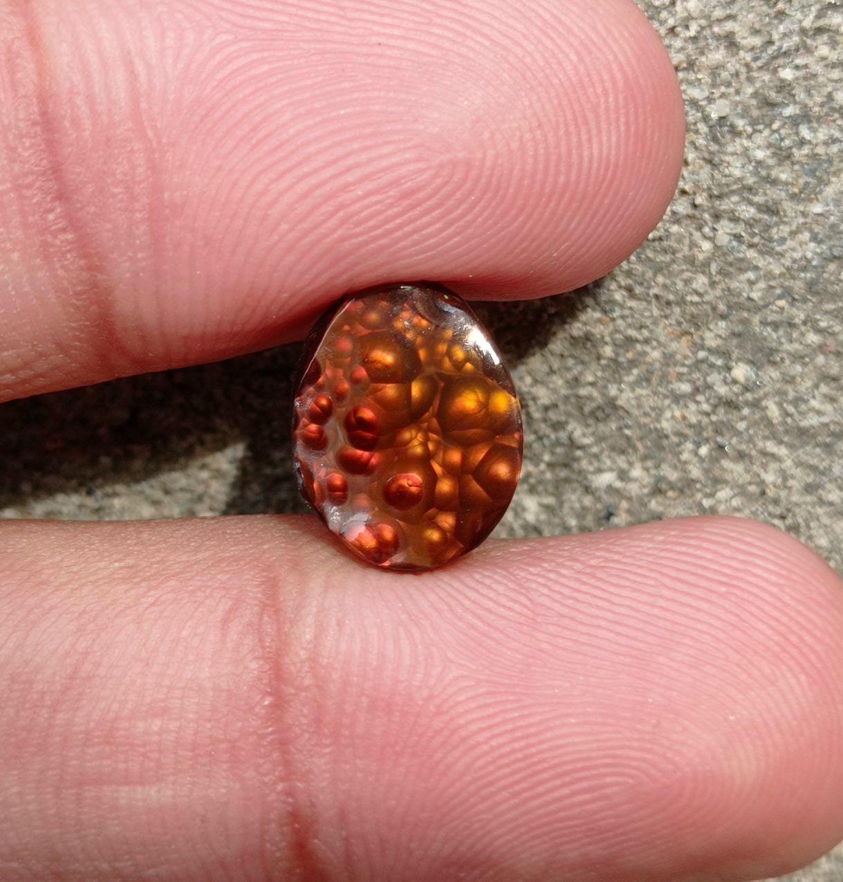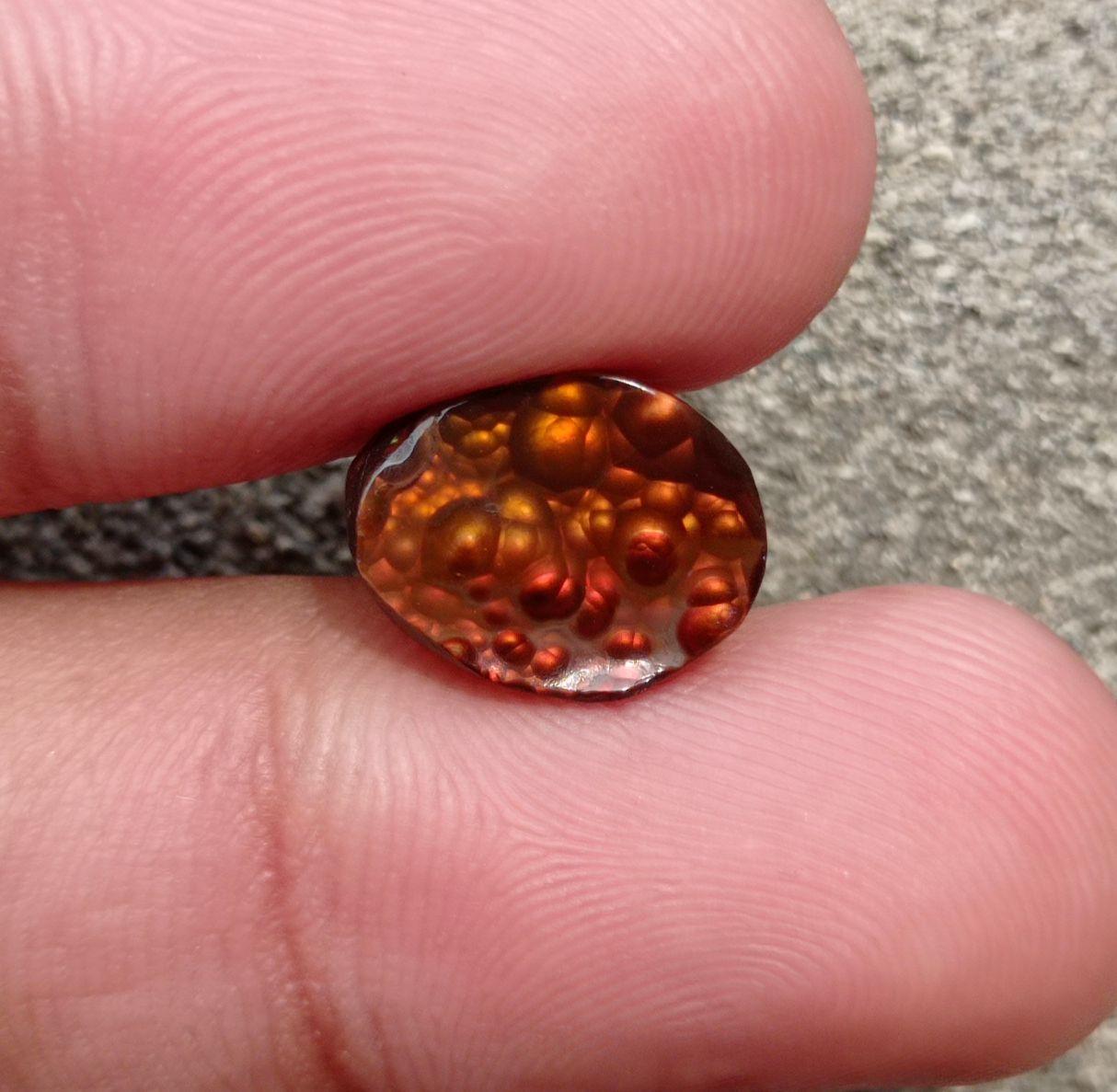 كابوشون العقيق الناري المكسيكي هو حجر كريم نادر بشكل لا يصدق وهو أكثر ندرة من الماس. مقاس 4.5 قيراط وأبعاد 13x10x4 ملم. يعد هذا الحجر الكريم مثاليًا لهواة الجمع وصانعي المجوهرات، وهو اكتشاف حقيقي.