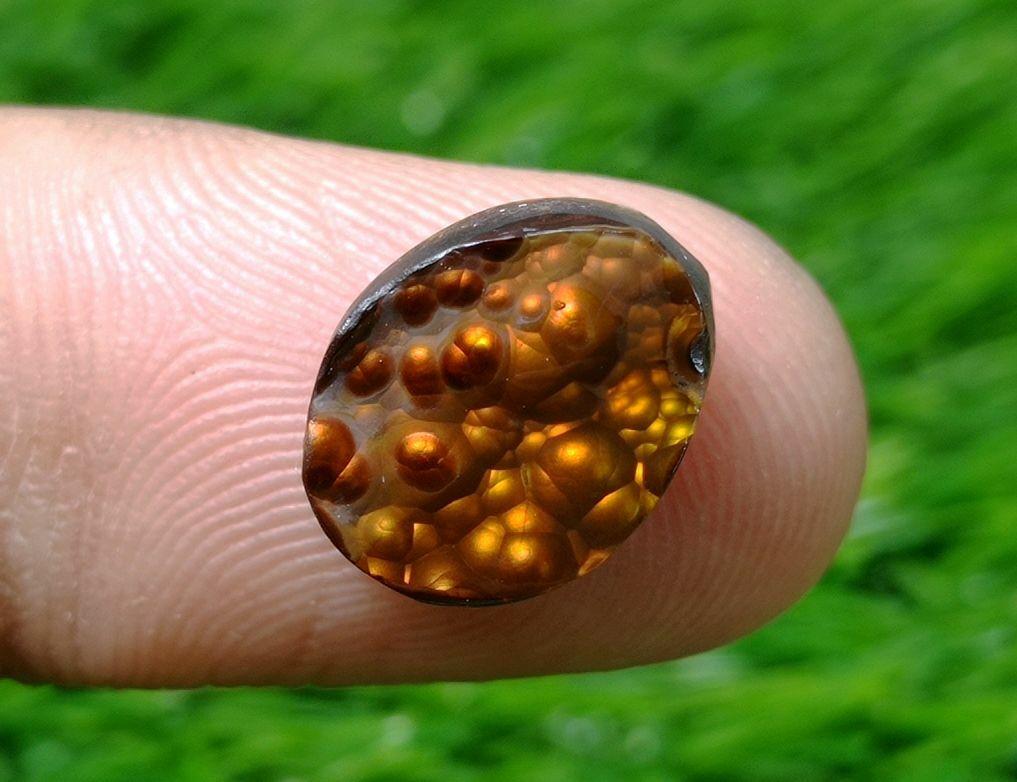 العقيق الناري المكسيكي، العقيق الناري النادر، كابوشون العقيق الناري - العقيق الناري الخام، حجر كريم نادر من الماس، الأبعاد - 13 × 10 × 4 مم