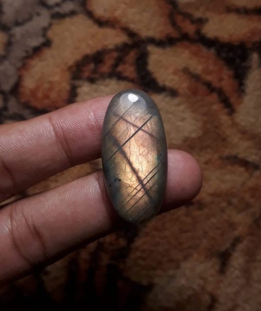 34.65ct Labradorite Cabochon - Spectrolite- Black Moon Stone - 28x17mmSpectro lite, also known as Labradorite and Black Moon Stone, is a beautiful gem originating from Canada. Its unique iridescence reveals a range of vibrant rainbow colors. Its striking beauty will add a sparkle to any setting. Labradorite Meaning and Benefits: Labradorite is considered...