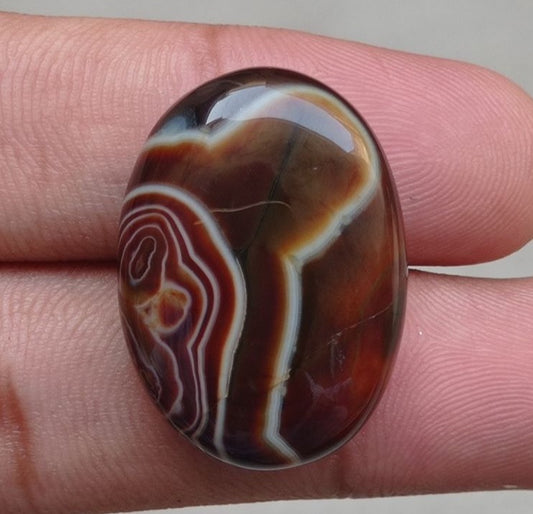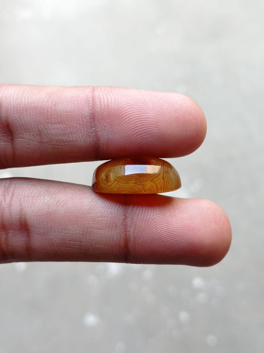38.4ct Fortified Agate - Sulaimani Aqeeq - Dimension 25x18x10mmThis 27.3 carat Sulaimani Aqeeq is a beautiful layered Agate gemstone with a distinctive fortified pattern. Perfectly cut cabochon and measured to a dimension of 25x18x10mm, it's an ideal addition to any jewelry collection. Gem Detail: Weight: 38.4 carts Dimension: 25x18x10mm