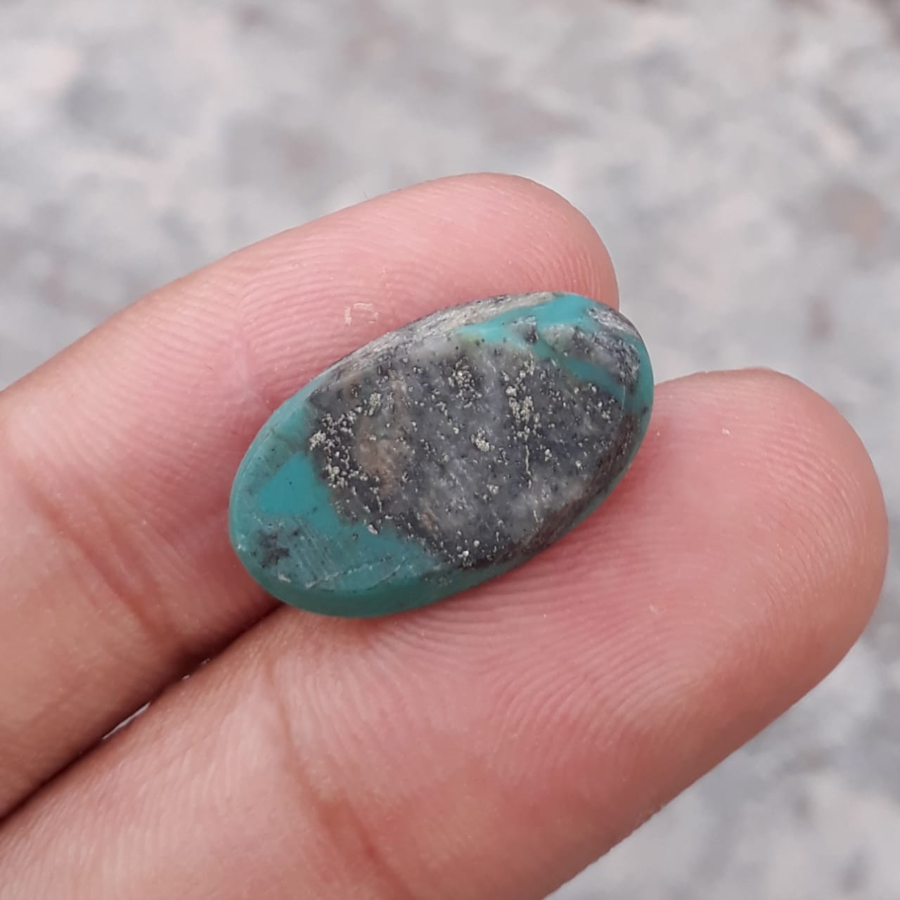 This beautiful natural turquoise stone measures 20x12mmand has a weight of 10.5ct. Its unique green matrix and natural shajri feroza make it a perfect choice for any jewelry piece. Enjoy the unique beauty of this real feroza stone.
