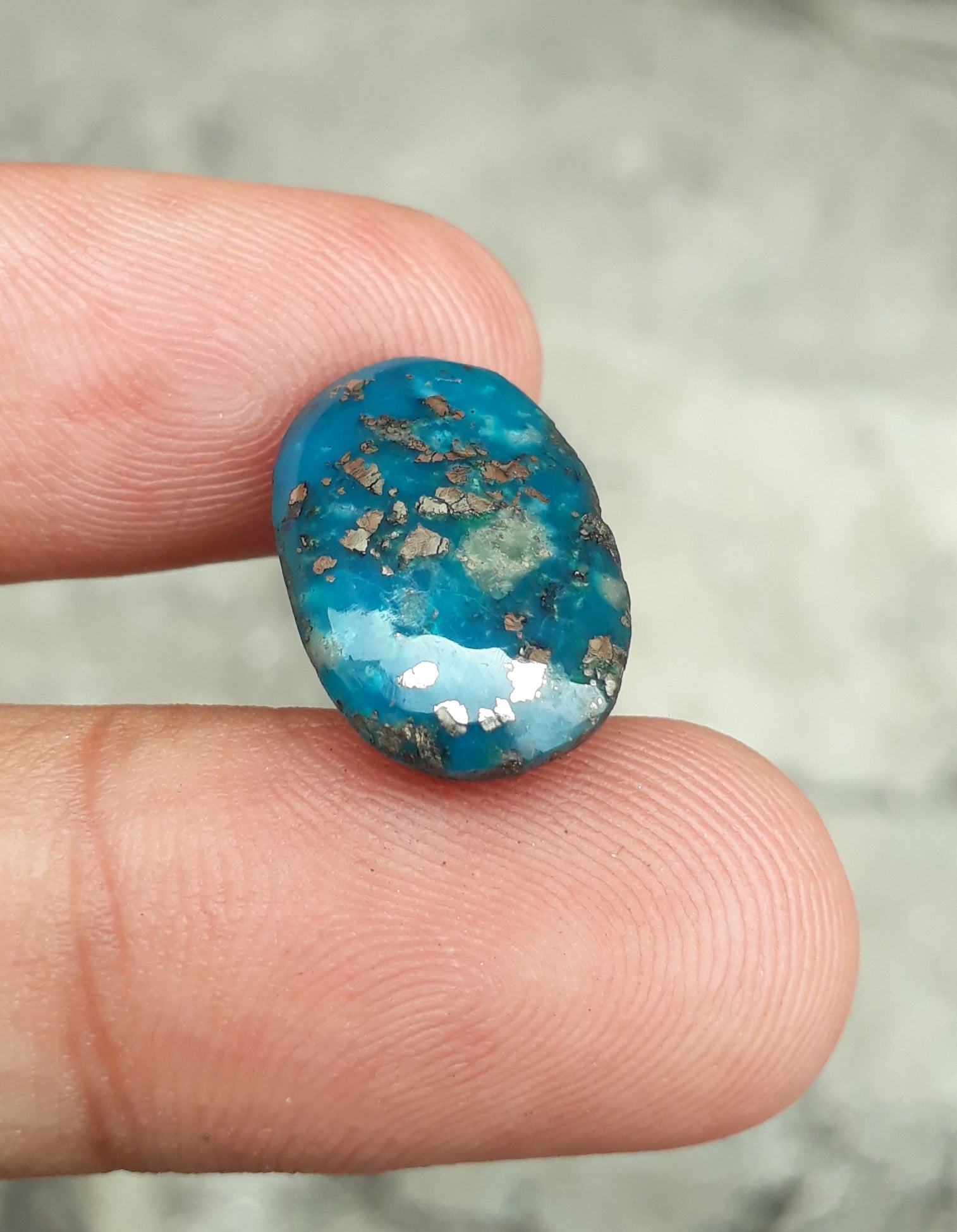 This classic Turquoise cabochon features a stunning deep blue color and intricate Pyrite matrix. Professionally-cut to shape, this 12.2ct-carat stone is a perfect choice for creating beautiful jewelry or using as a collectible. With its eye-catching design, it is sure to add beauty to any piece.