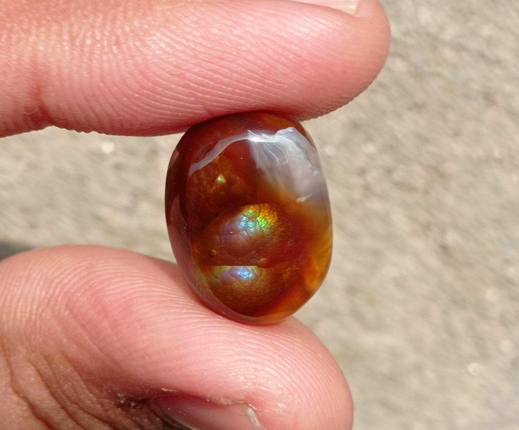 This 17.9ct Fire Agate oval cabochon is perfect for any special occasion. It boasts an eye-catching fiery purple hue and is rare in size and quality. This beautiful gemstone measures 18x13mm and makes a stunning gift for the one you love.