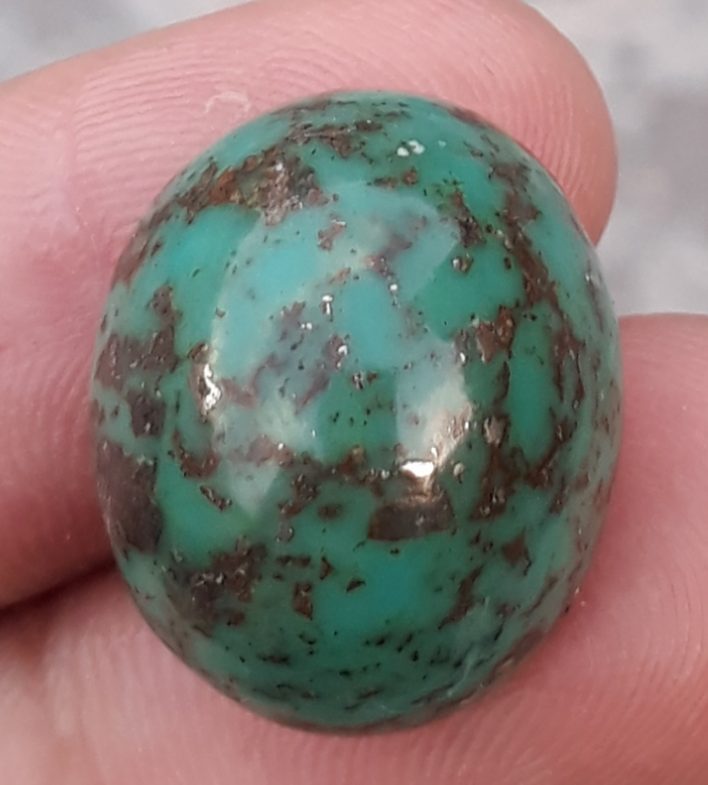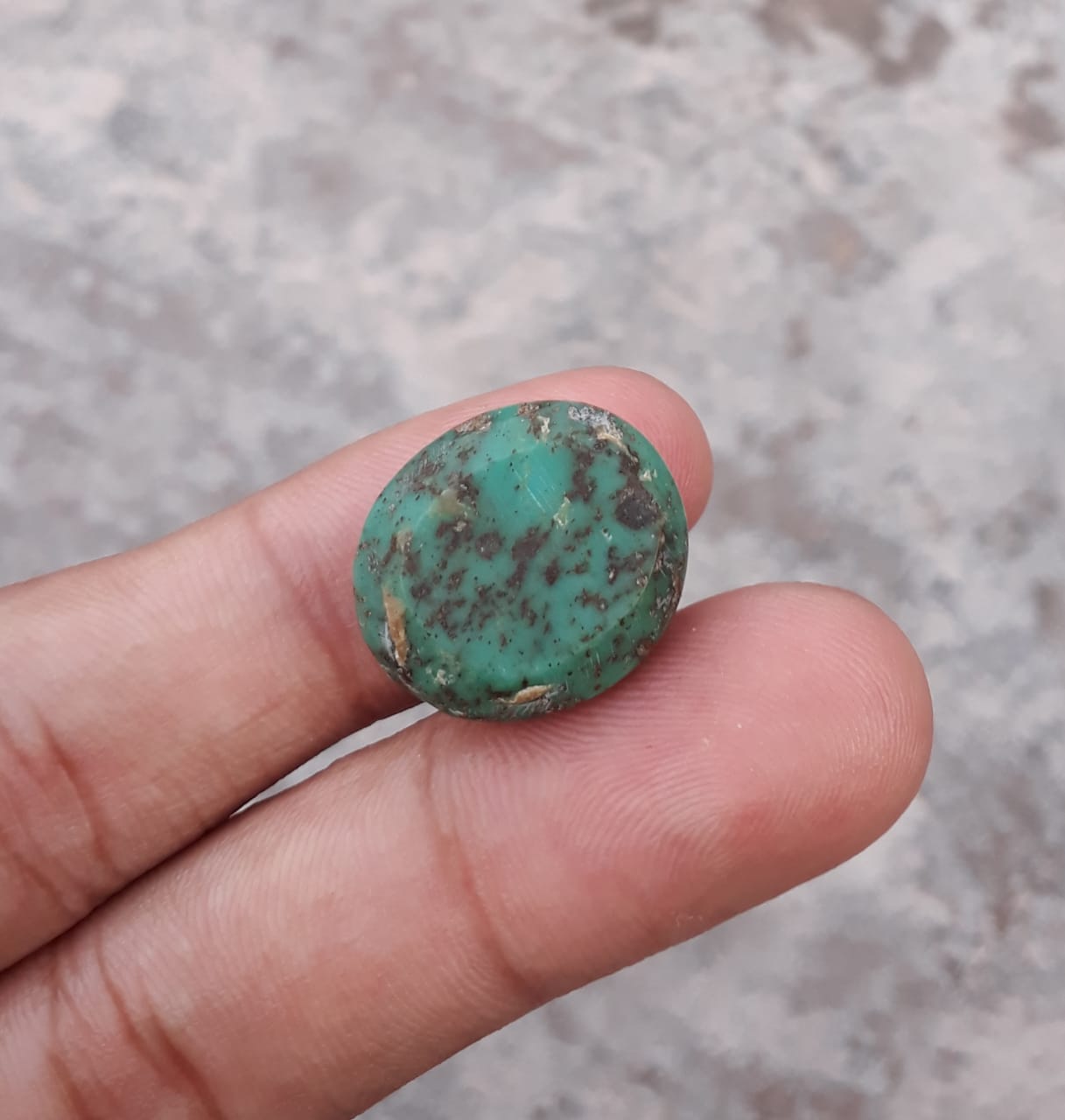 This Natural Turquoise gemstone is an exquisite, 21 x 18mm oval cabochon featuring unique Green Matrix Turquoise. Cut from Real Firoza, it is a genuine Shajri Feroza that will surely dazzle in any piece.