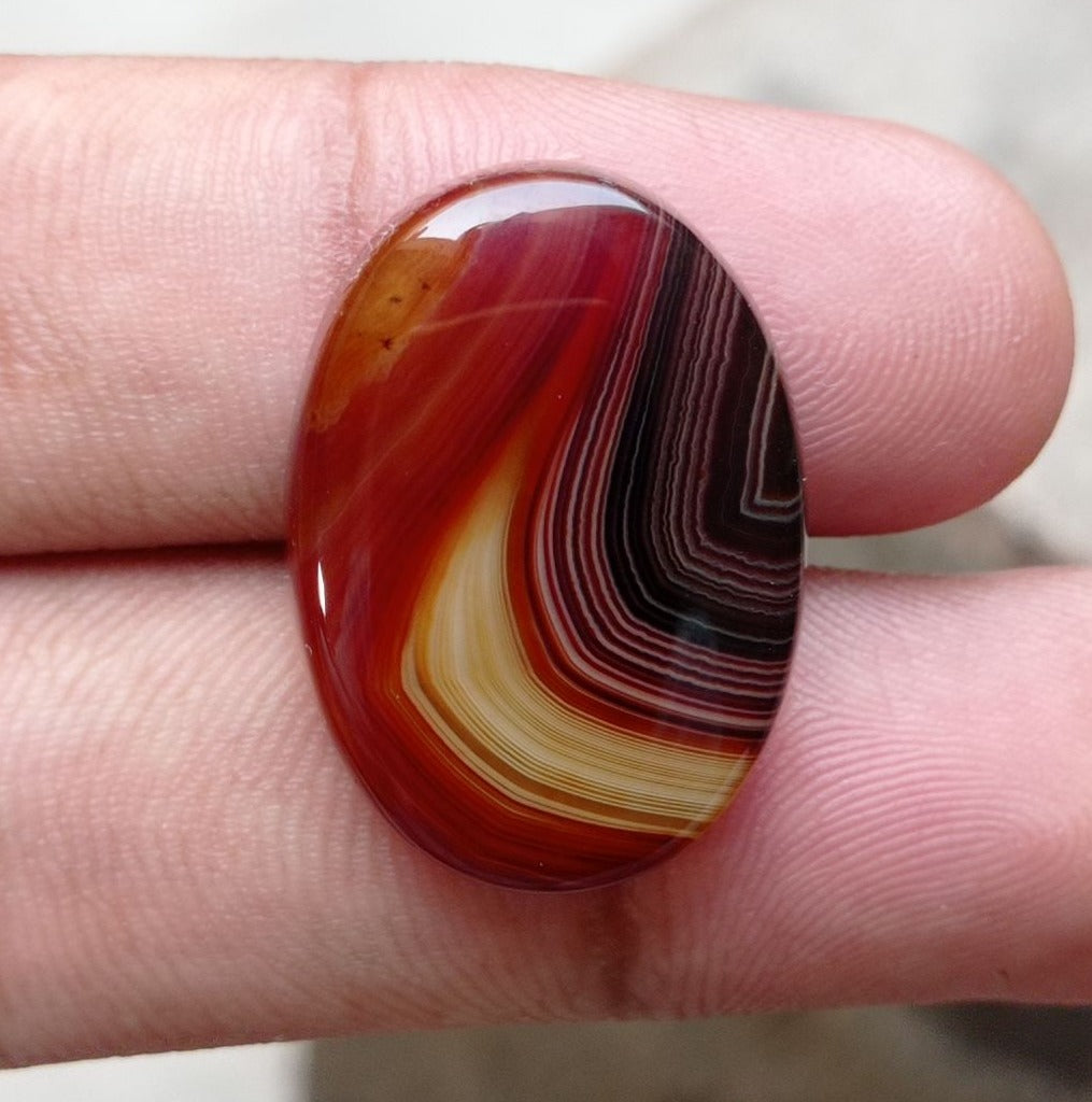 This 31.1ct Fortified Agate Cabochon is ideal for use in jewelry or in craft projects. With a part stone, part glass appearance, its exotic shape and clarity add a special touch to any setting. This Sulaimani Aqeeq measure 26x19x6.5mm.