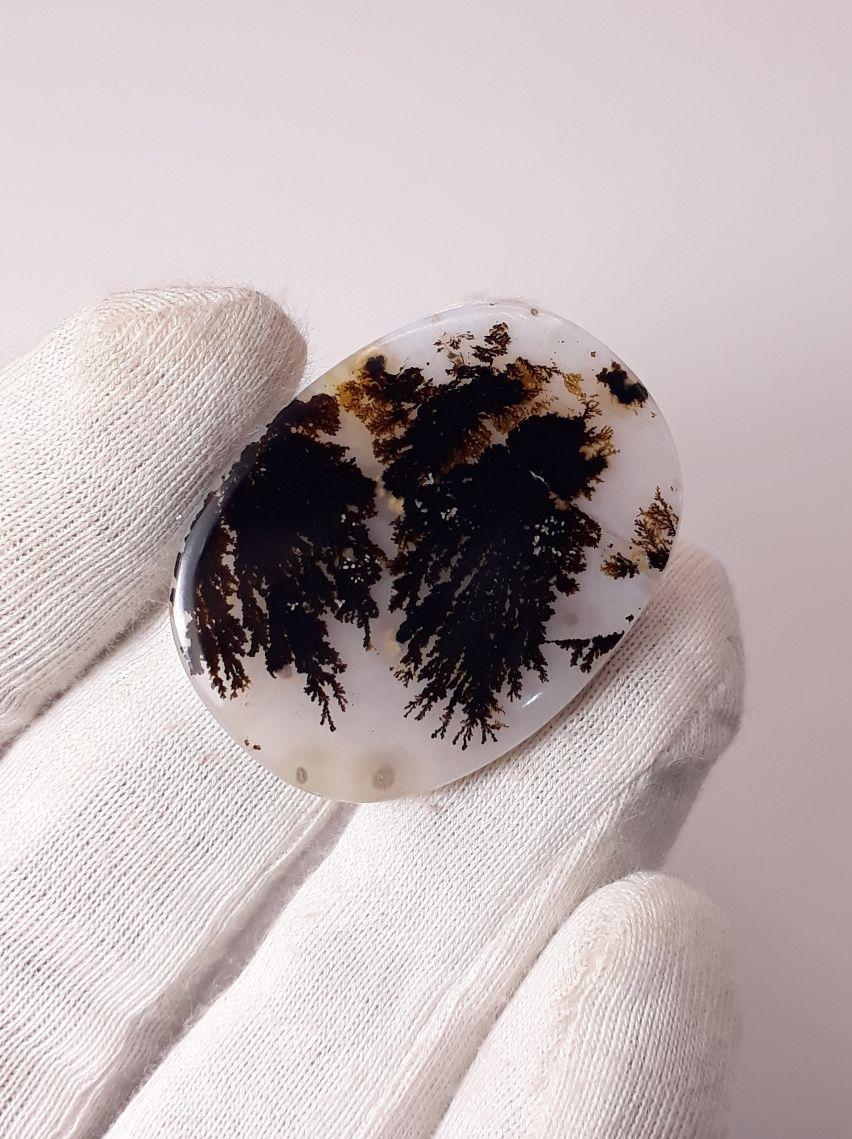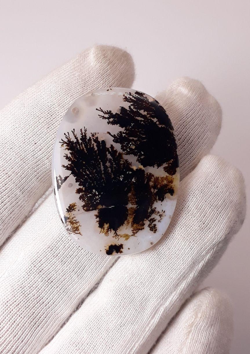 This Natural Dendritic Agate Shajri Aqeeq gemstone is an ideal gift, measuring 34x26mm and featuring stunning patterns in its design. It is cut and polished to a high luster, reflecting its natural beauty.
