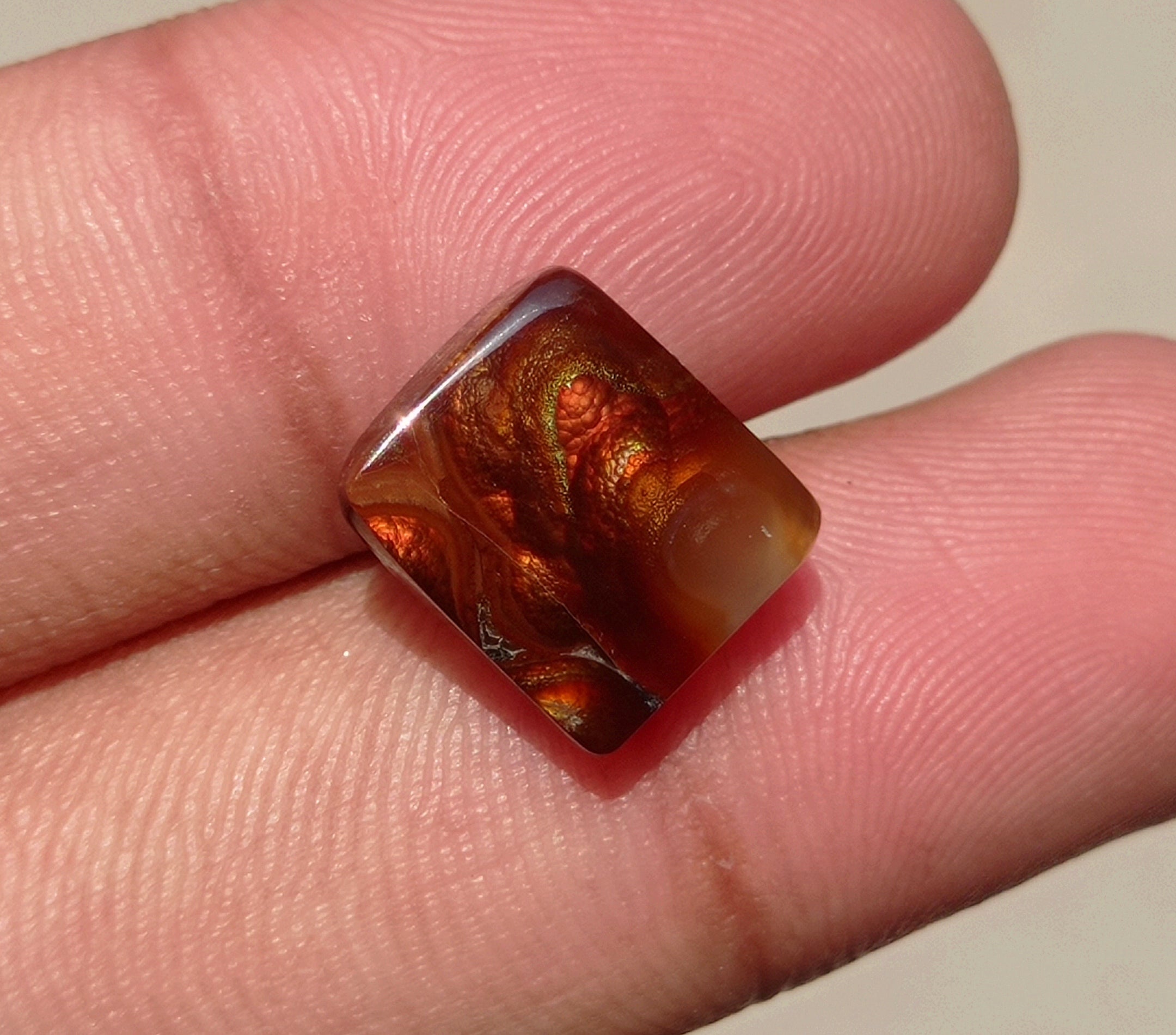This 7.2ct Mexican Fire Agate is a rare gemstone of vibrant color and perfect square shape. Its dimensions measure 12x11x4mm, making it an ideal gift for any occasion. Its rare qualities make it a precious and meaningful gemstone to any recipient.