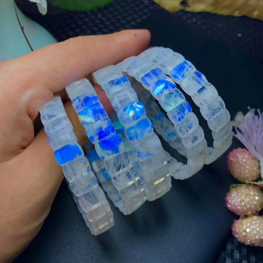 This Natural Blue Light Moonstone Gemstone Bracelet is perfect for adding a touch of elegance to your jewelry collection. This attractive bracelet boasts the natural benefits of moonstone, including stress relief, emotional stability, and improved sleep patterns.