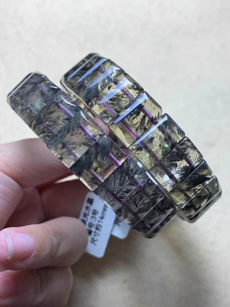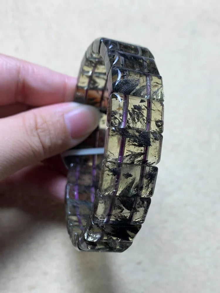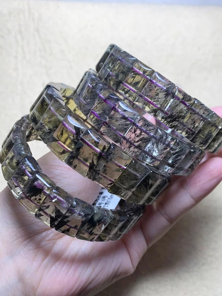 This sophisticated Natural Cacoxenite Purple Gold Rutilated Quartz Gemstone Bracelet is the perfect accessory for any occasion. This beautiful bracelet is sure to bring some extra sparkle to your look.