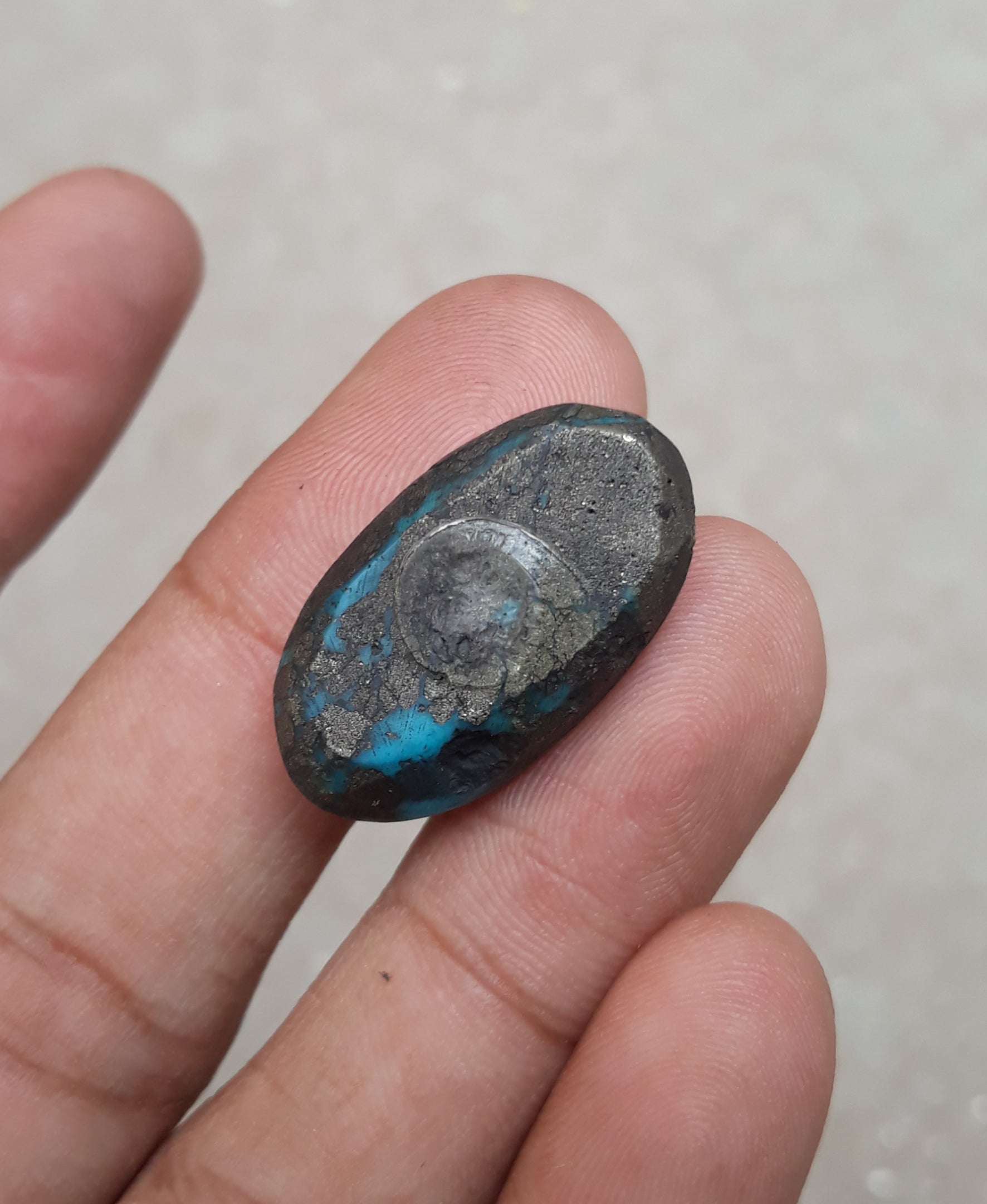 Natural Certified Turquoise with Pyrite - Blue Matrix Turquoise - Shajri Feroza-44.6Ct-27x16m